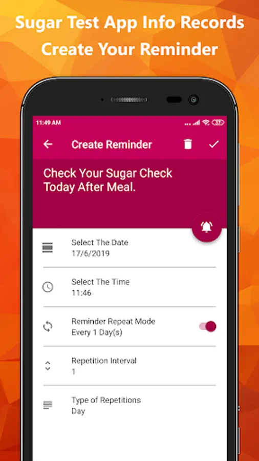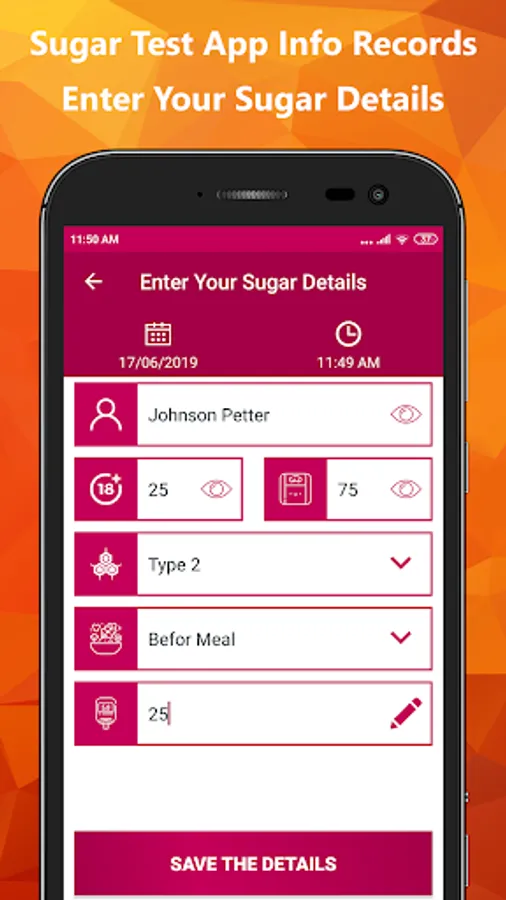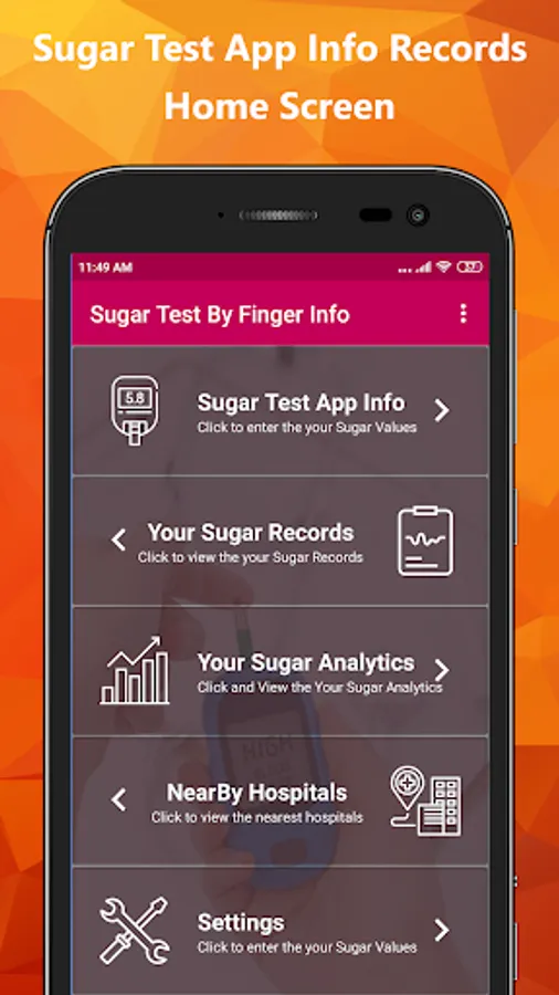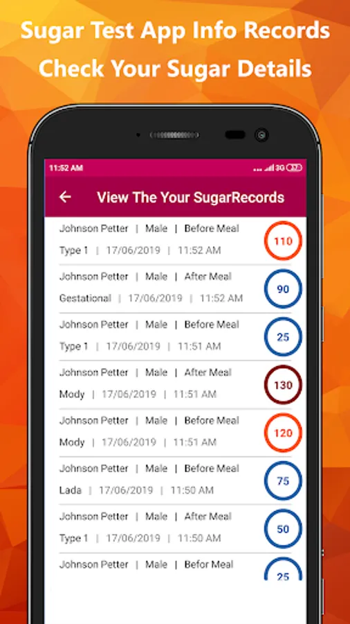 Sugar Test App Info Records gives you the sugar levels of the history.