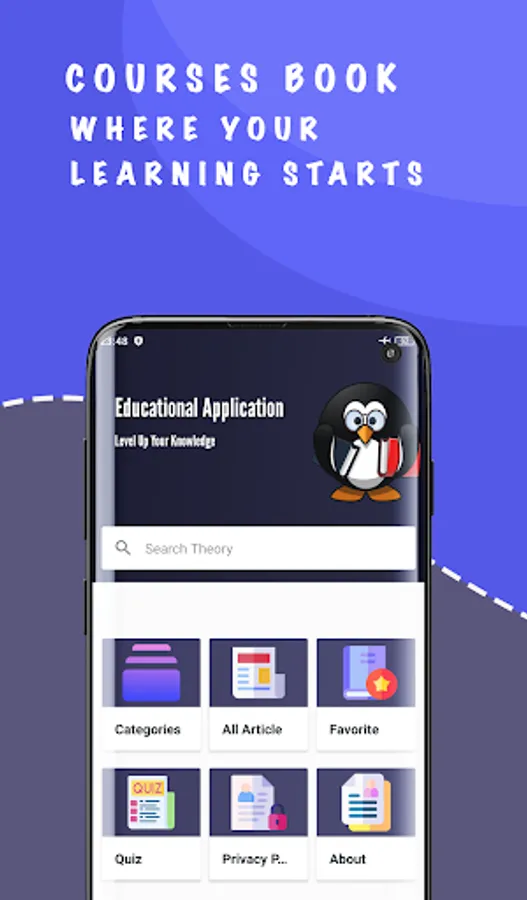 Application users can search material very easily through the search feature. Users can also search through categories or entire material very easily.