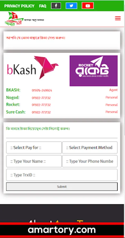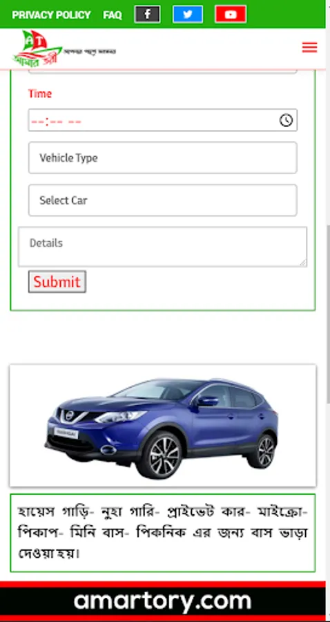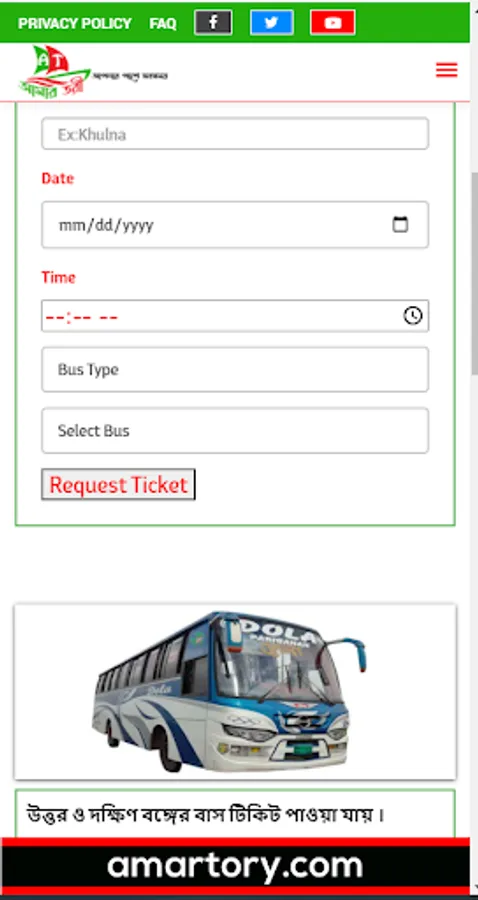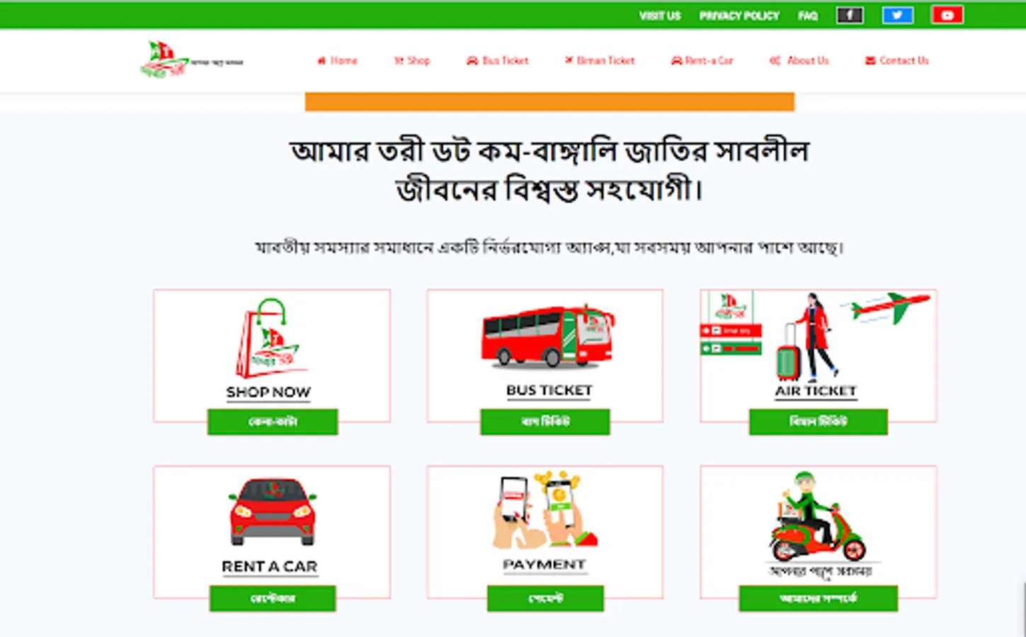 www.amartory.com**আমার তরী দিচ্ছে আপনাদের নিশ্চিন্ত সেবা****আমাদের সেবা সমুহঃ- ***এয়ার টিকিট***বাস টিকিট***রেন্টেকার***অনলাইন শপিং । **** ঢাকা থেকে----> খুলনা--- বাগেরহাট--- পিরোজপুর--- গোপালগঞ্জ---- নড়াইল--- যশোর--- নওগাঁ--- বগুড়া--- চট্রগ্রাম গামী সমস্ত পরি-বহনের টিকিট।***