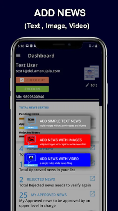 Reporting Incharge: Reporting inchage has a collective information of all the reporters. It has the first right to approve the news content field by the reporters and send them for the second phase approval to the desk incharge & admin incharge.