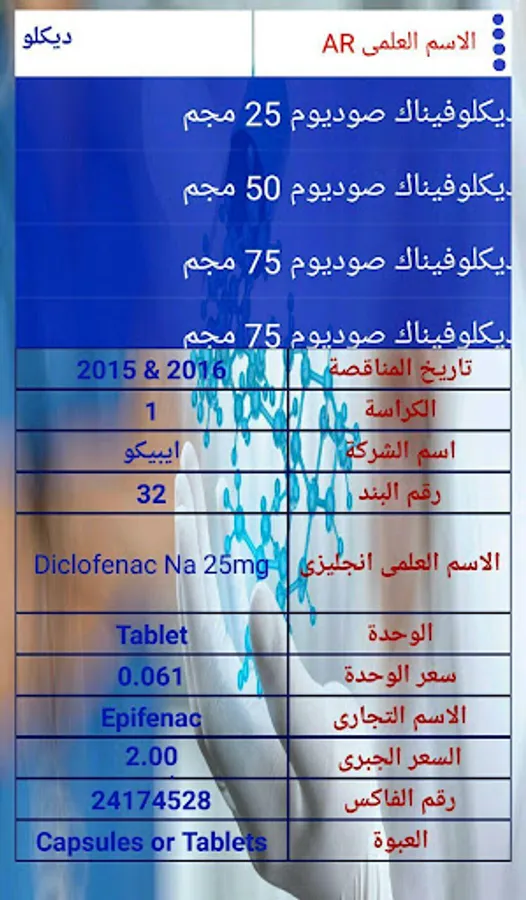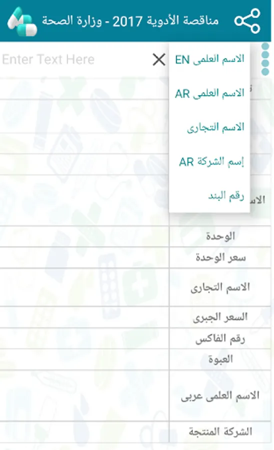 - You can search for any type by active ingredient Arab or active ingredient English or item number or trade name
