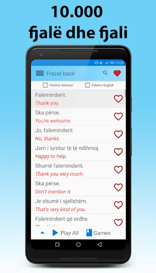 Ju mund të zgjidhni gjuhën tuaj amtare nga 60 gjuhë të huaja.
