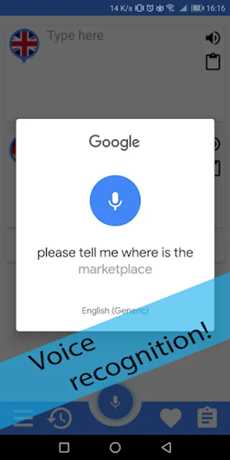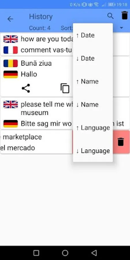 - History page: the app remembers all previous translations for you. You can select words or sentences that you have already translated in the past