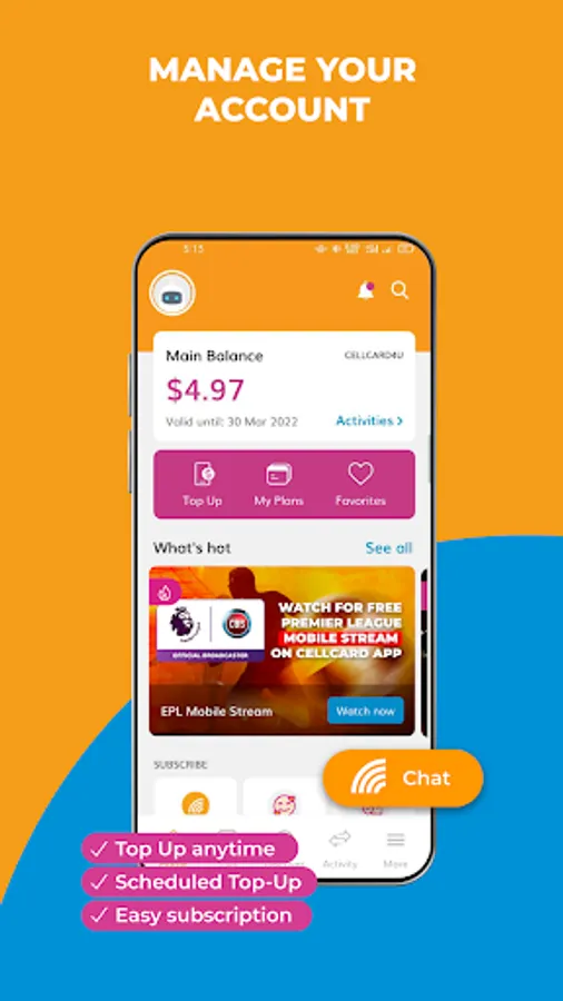 Browse our extensive list of plans, add-ons and value offers to meet your every lifestyle need, whether its music, tv or gaming. See anything you like? Subscribe to it with a press of a button. Simple as that. No need to memorise subscription codes.