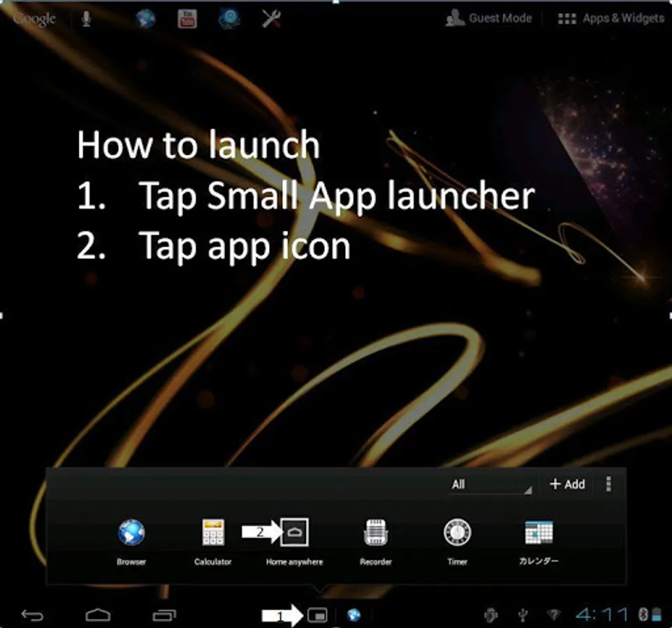 Small Apps launcher is below, and please refer to screen shot also.
