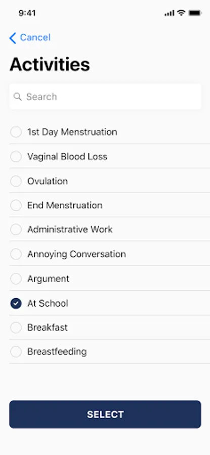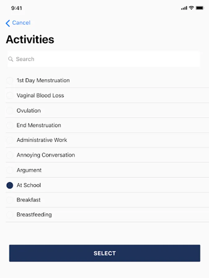 •Tik op de button activiteit. Tik op de activiteit die u wilt invoeren;