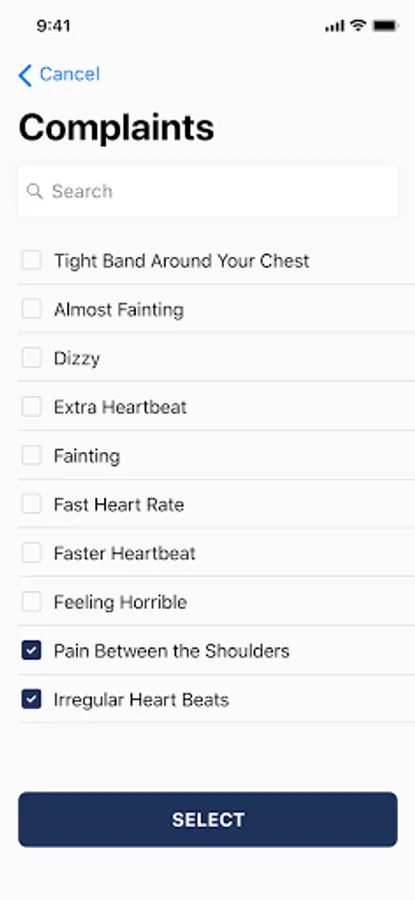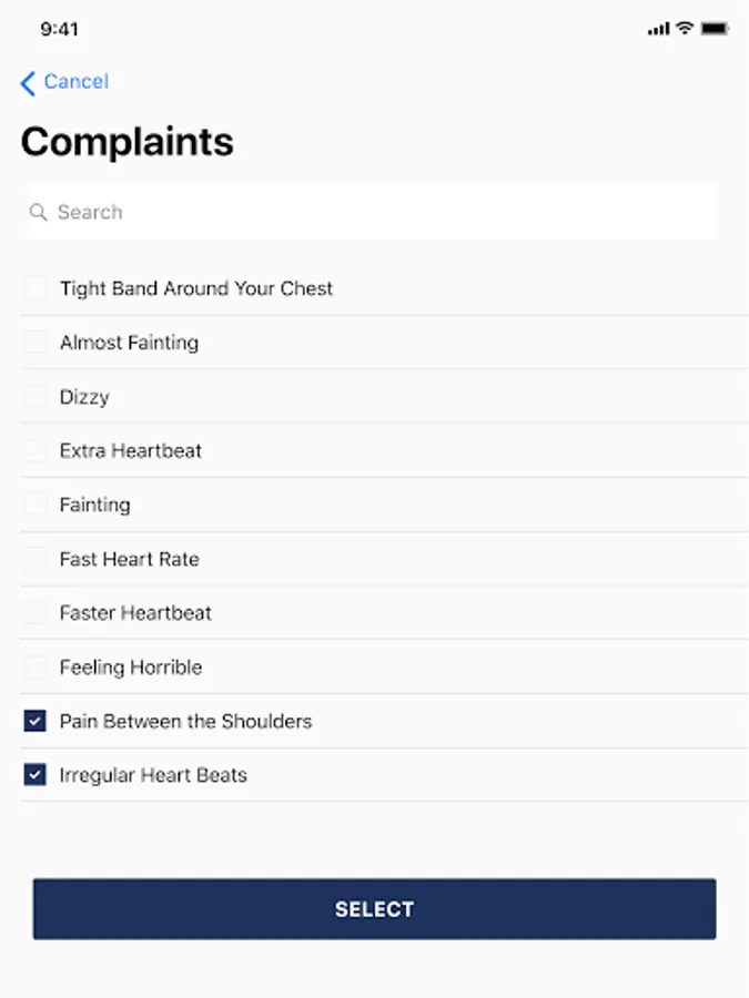 •Tik daarna op de button klachten. Tik op de klacht(en) die u wilt invoeren;