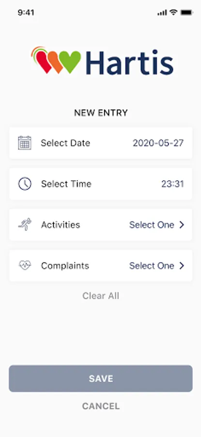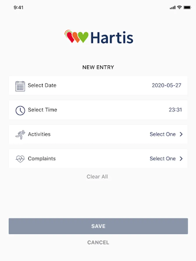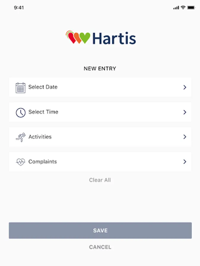 U heeft een ECG Recorder (Holter) meegekregen om uw hartritme te registreren. Daarnaast is u gevraagd uw activiteiten en klachten bij te houden in een dagboek. Met de Hartis App kunt u heel gemakkelijk uw dagboek bijhouden. Het enige wat u hoeft te doen is de activiteit en klacht(en) aantikken waar u last van heeft. De Hartis App vult zelf de datum en het tijdstip in.
