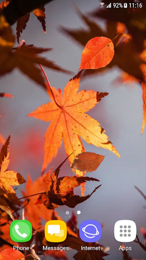 How to set free autumn live wallpaper on the screen of your phone: Home → Applications → Settings → Display → Wallpapers → Home screen wallpaper → Live wallpapers → Beautiful Autumn Live Wallpaper