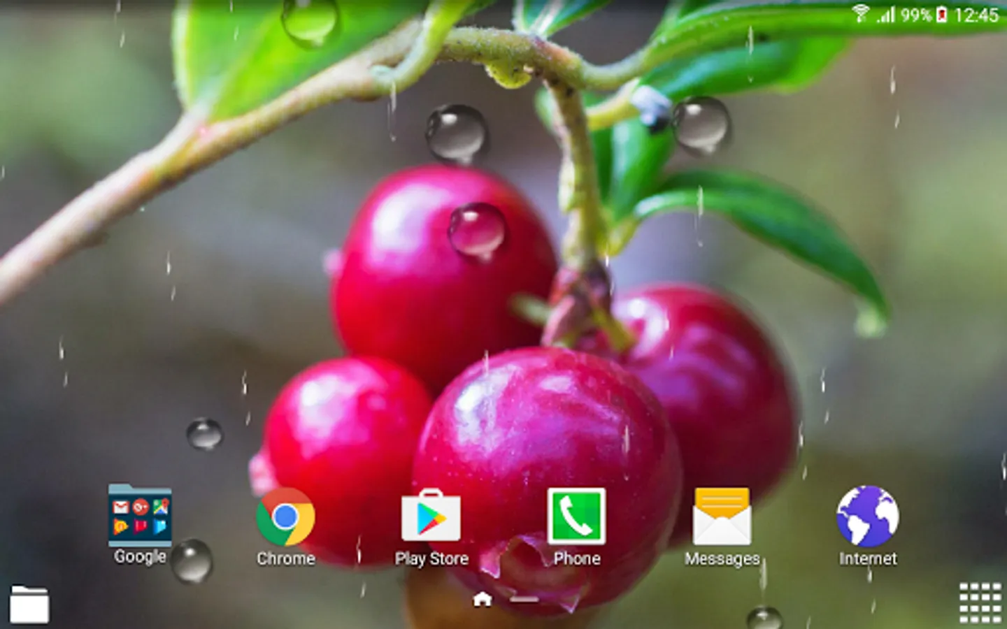 Berries live wallpaper - beautiful animated screen saver with photos of juicy summer berries: cherries, blackberries, raspberries, currants and others, and amazing dynamic effects: live rain or live water effect. This animated screen saver will be a wonderful decoration for your desktop of your Android phone or tablet.
