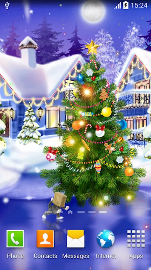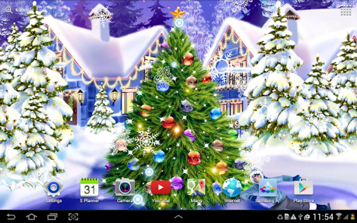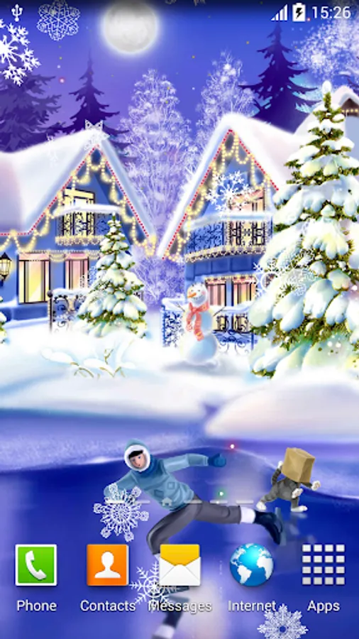 Enjoy our free beautiful animated winter live wallpaper “Christmas Rink Live Wallpaper” with Christmas tree with animated sparks and lights, with animated Christmas characters who are gliding along to the softly falling snow (2D / 3D snowfall). This Christmas wallpaper is perfect for winter holidays, for holy night, christmas day and new year.