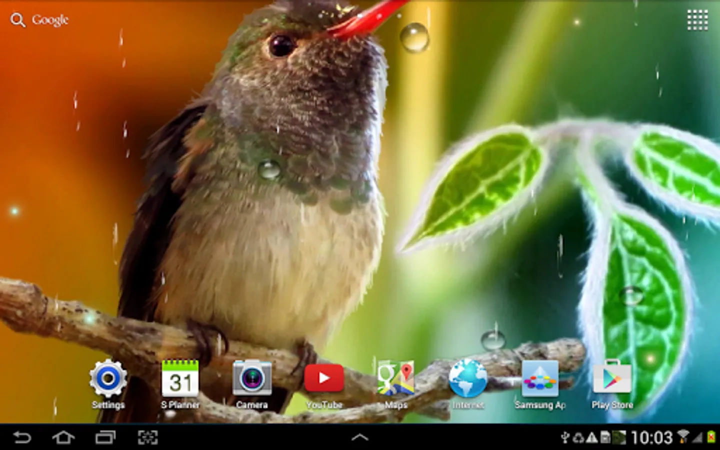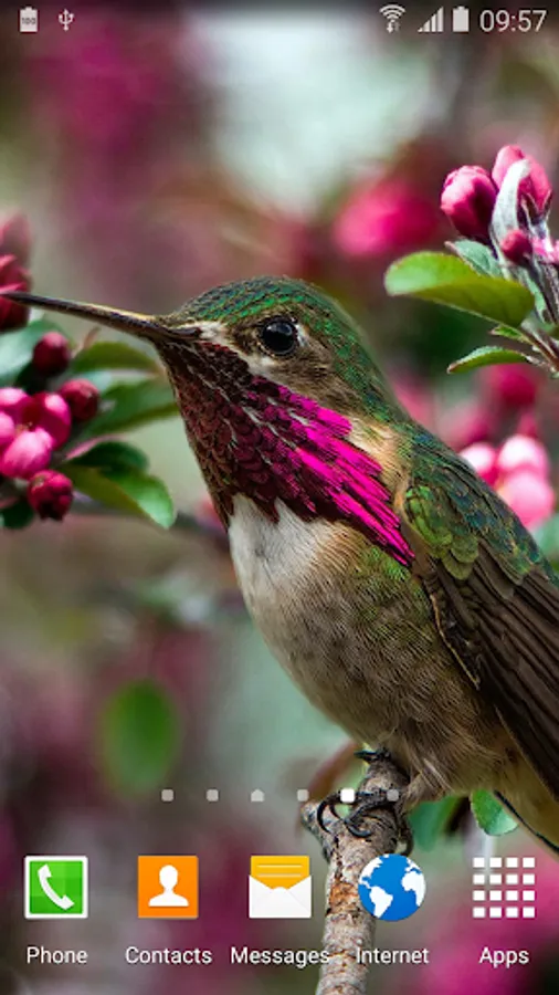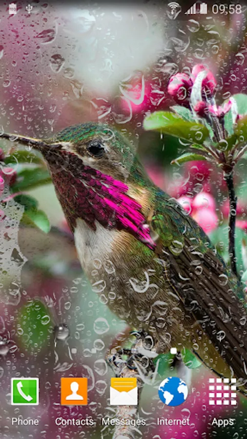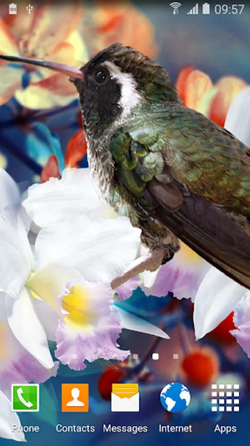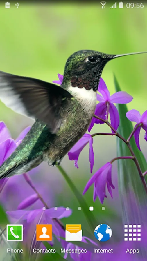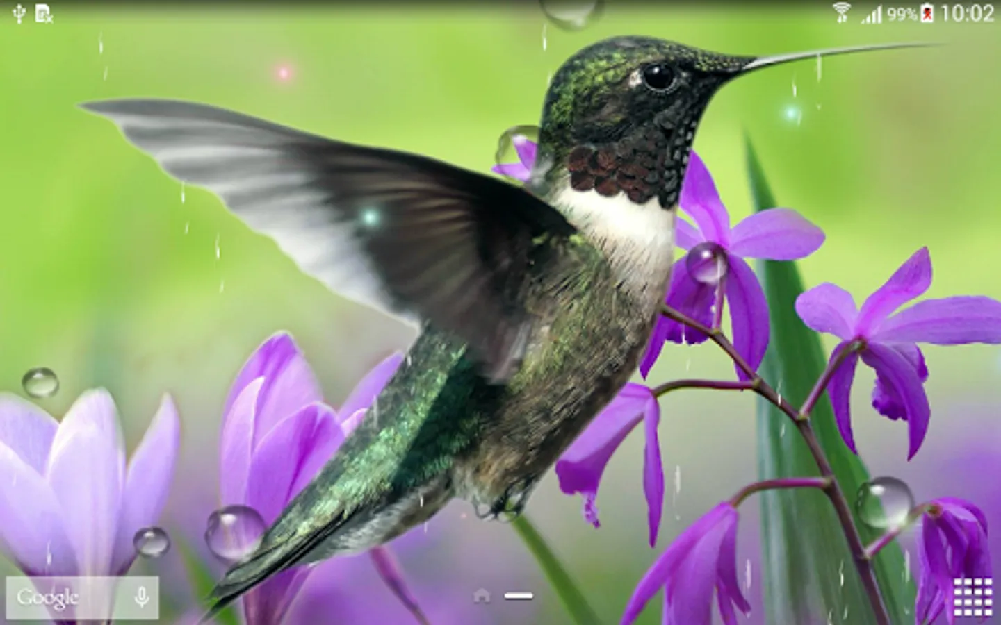 How to set this free wallpaper app with colibries photos on the home screen of your phone: Home → Applications → Settings → Display → Wallpapers → Home screen wallpaper → Live wallpapers → Hummingbirds live wallpaper