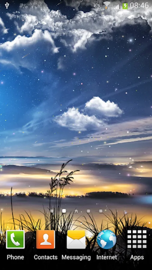 How to set Falling Stars Live Wallpaper on the screen of your phone: Home -> Applications -> Settings->Display -> Wallpapers -> Home screen wallpaper -> Live wallpapers-> Falling Stars Live Wallpaper