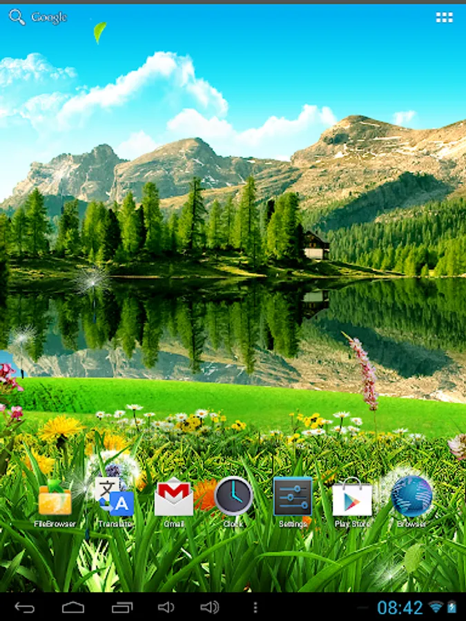 Sunny morning, beautiful mountain lake with live water, falling leaves and flying seeds of dandelions. High in the sky slowly floating clouds and flying birds. All this you will find in our Animated Live Wallpaper “Mountain Landscape Live Wallpaper”. Lots of effects and settings will help you to change our dynamic wallpaper, depending on your desires and preferences. This calm photorealistic desktop background will be pleasing to the eye for a long time.