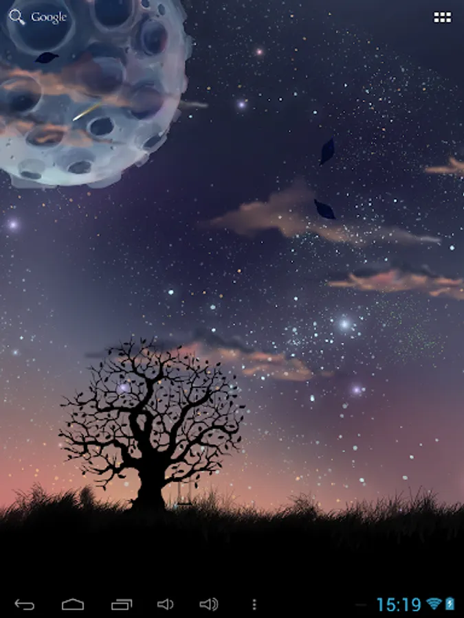 What could be more beautiful than the night sky? Starry sky, streaking comets, slowly floating clouds and, of course, a huge moon. Sweeps across the sky spectacular meteor rain, casting mysterious shadows on the ground. Now you can look up at the sky, find a shooting star, close your eyes and make your wish :) Animated Live Wallpaper for Android « Moonlit Night" will allow you to enjoy the beauty of the stargazing at any time of the day. Hight quality hand-drawn HD picture will be a true decoration for your Android smartphone or tablet. A lot of settings and effects will help to make your device look unique. Enjoy a night full of magic and mysticism.