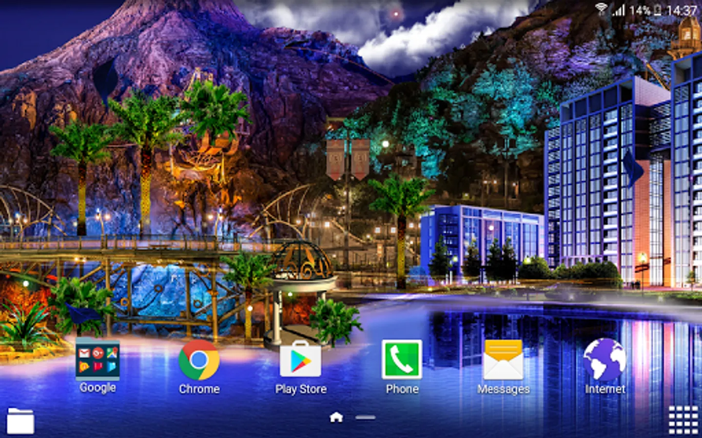 Night city live wallpaper - beautiful free live wallpaper with night sea, night city landscape, live water effect, sound of waves, animated clouds and much more. Install this free wallpaper and relax listening to the soothing sound of summer ocean waves crashing on the night city shore.