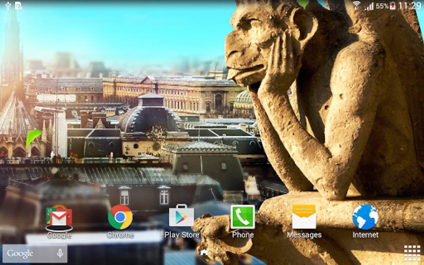 How to set this free wallpaper with views of Paris on the home screen of your phone: Home → Applications → Settings → Display → Wallpapers → Home screen wallpaper → Live wallpapers → Paris Live Wallpaper