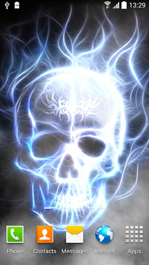 How to set this free live wallpaper on the screen of your phone: Home → Applications → Settings → Display → Wallpapers → Home screen wallpaper → Live wallpapers → Skulls Live Wallpaper