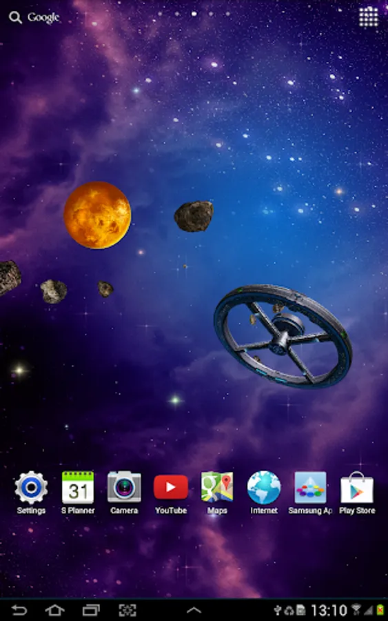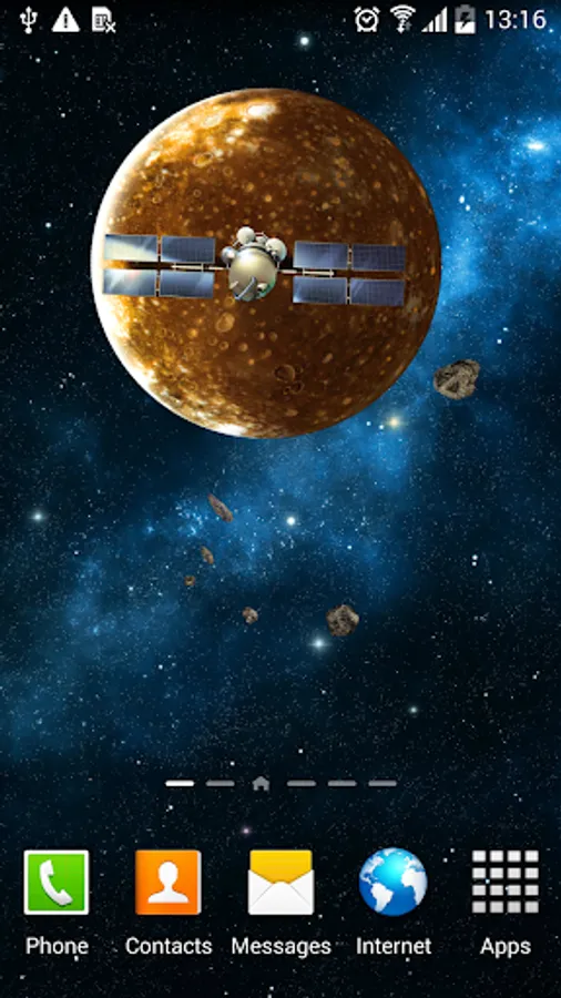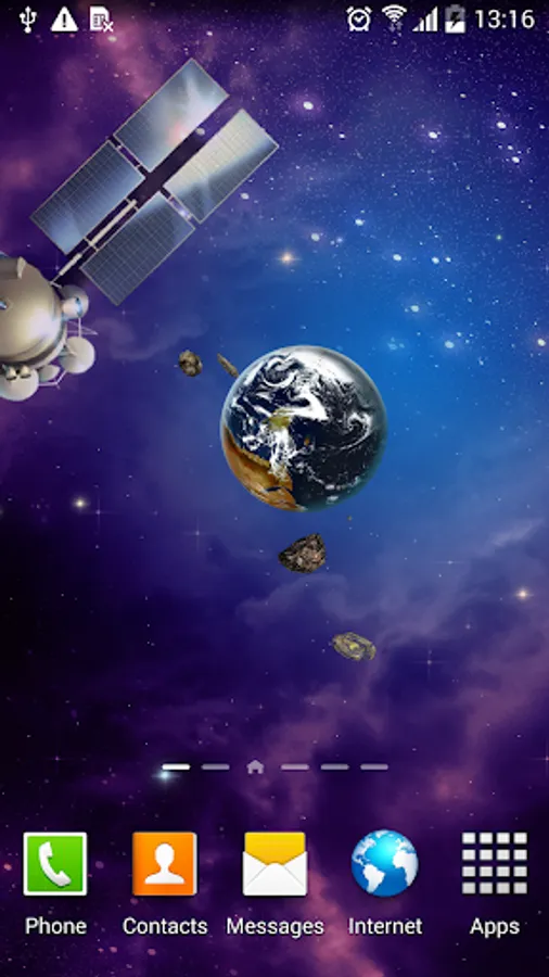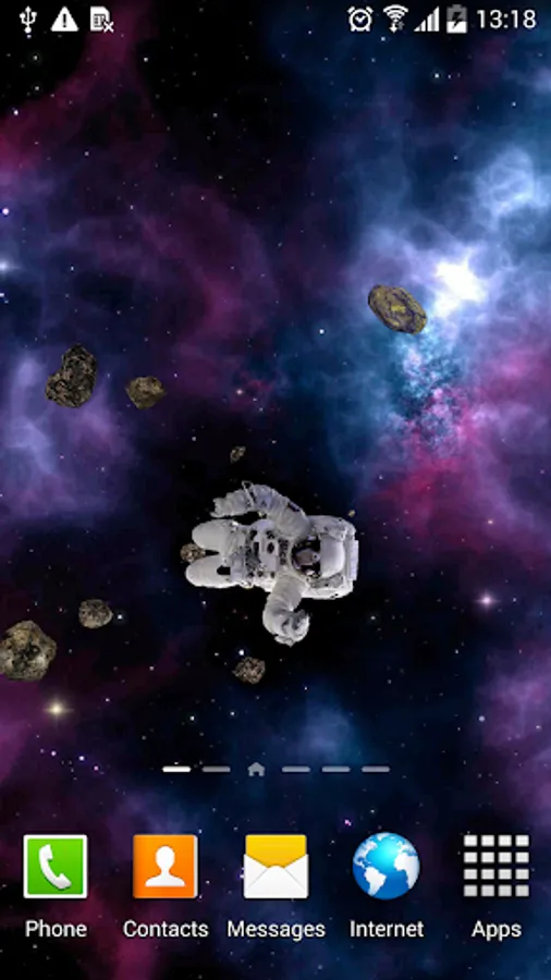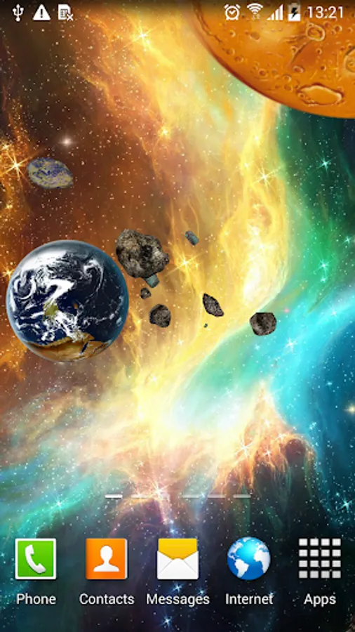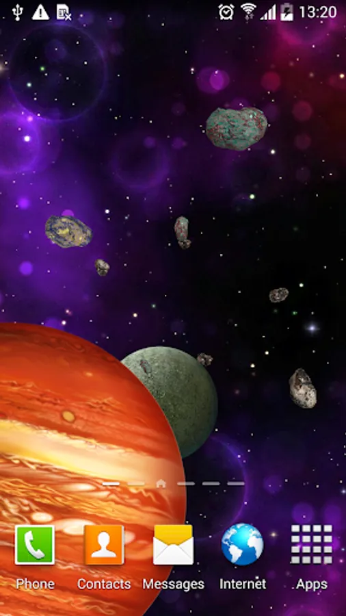 How to set this free space wallpaper with 3d asteroids on the home screen of your phone: Home → Applications → Settings → Display → Wallpapers → Home screen wallpaper → Live wallpapers → Space Live Wallpaper