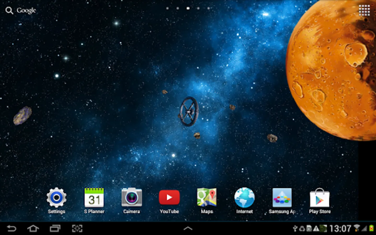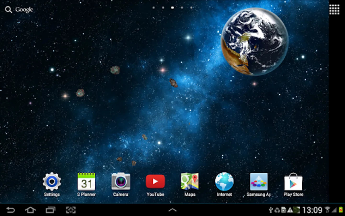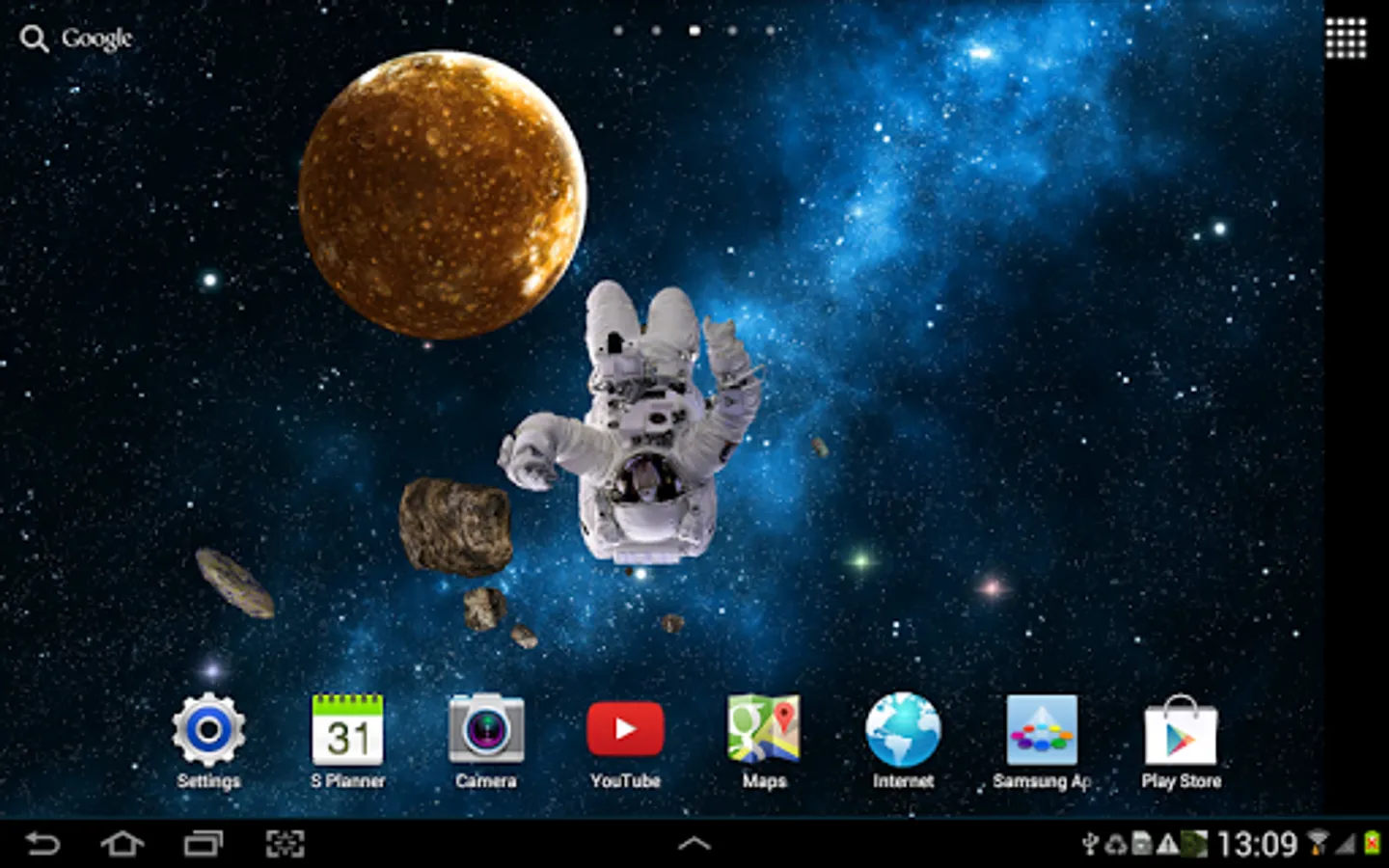 How to set this free space wallpaper with 3d asteroids on the home screen of your phone: Home → Applications → Settings → Display → Wallpapers → Home screen wallpaper → Live wallpapers → Space Live Wallpaper