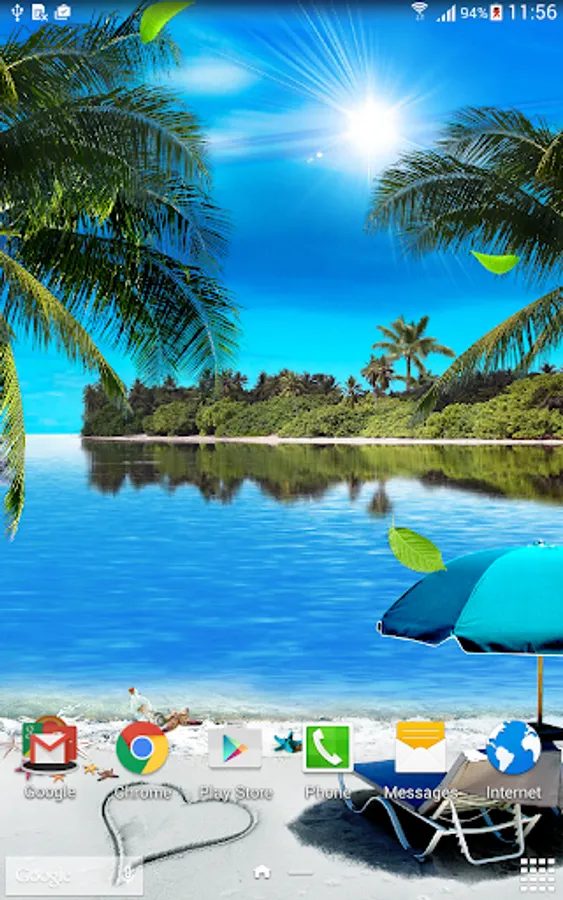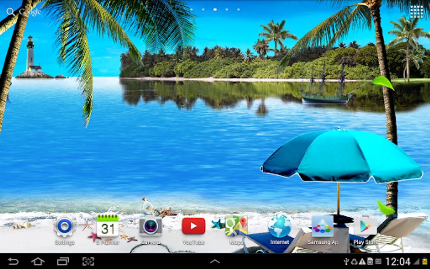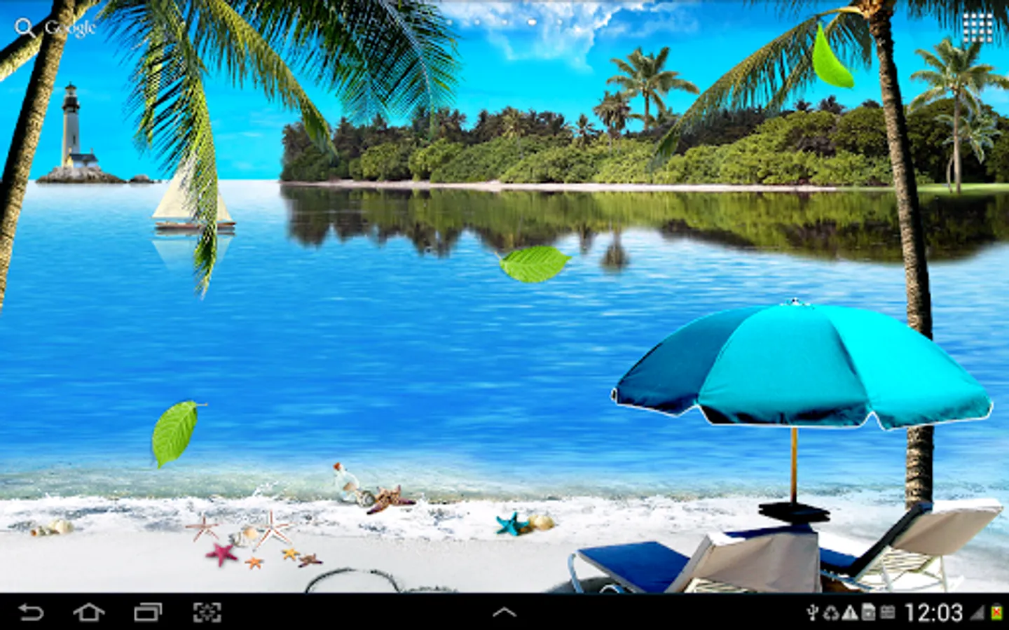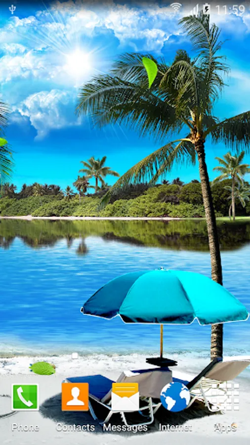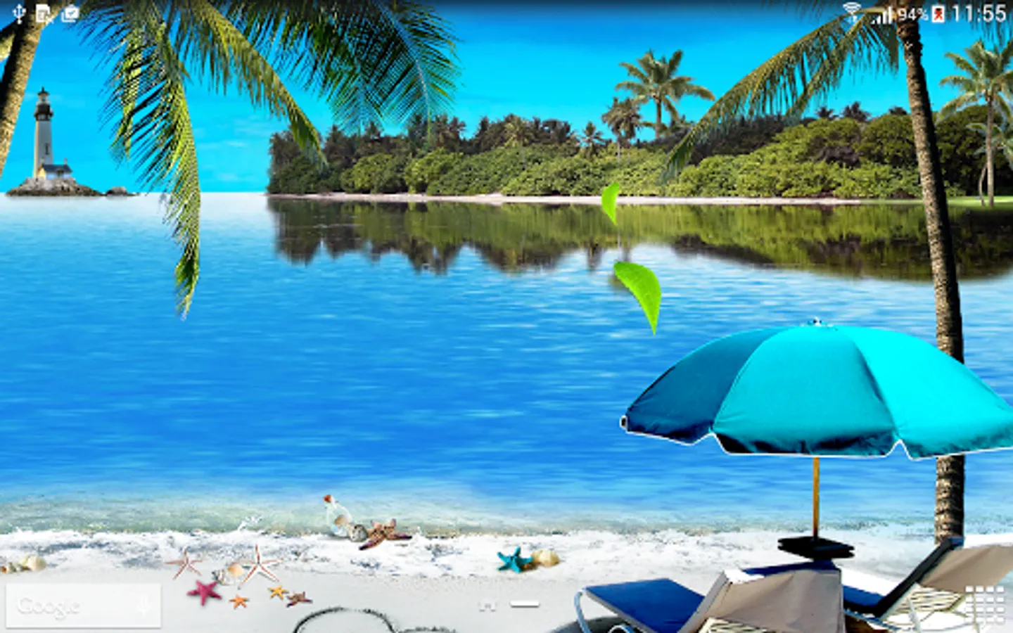 Beach Live Wallpaper — free wallpaper for all of you who truly enjoy summer and exotic holiday destinations, with wonderful HD beach image, live water effect, animated clouds, sandy beach and palm trees. Relax in this tropical paradise near the azure water, listen to the soothing sound of summer waves crashing on the shore.