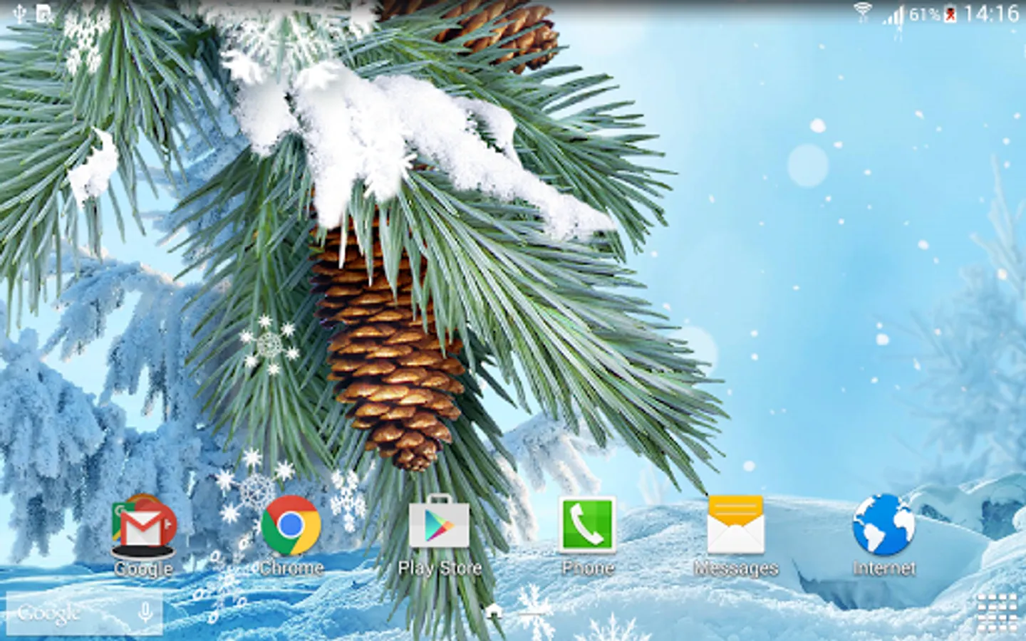 How to set free animated winter screensaver on the screen of your phone: Home → Applications → Settings → Display → Wallpapers → Home screen wallpaper → Live wallpapers → Winter Live Wallpaper