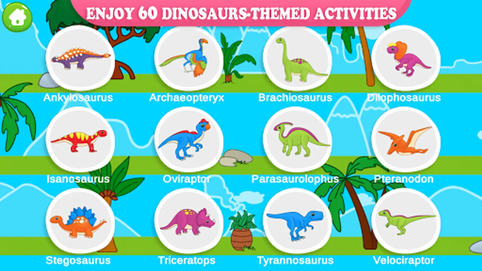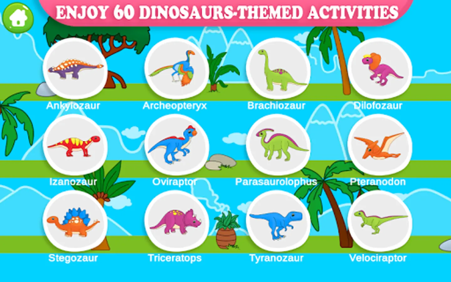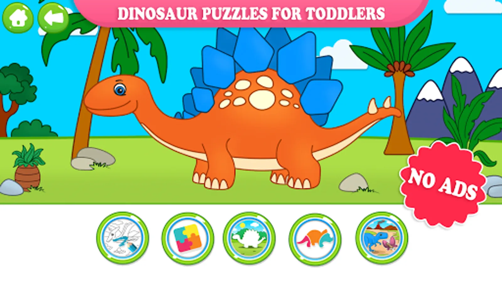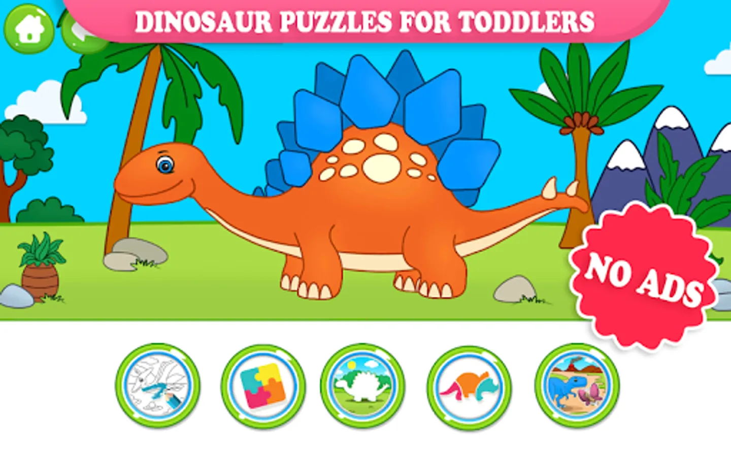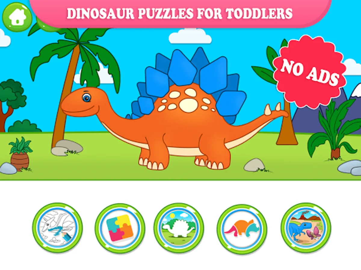Dinosaur Puzzles for Kids is an entertaining and educational app for kids that contains 60 themed tasks and activities with dinosaurs: jigsaw puzzles, puzzles, matching shapes, coloring pages, and backgrounds for decoration.