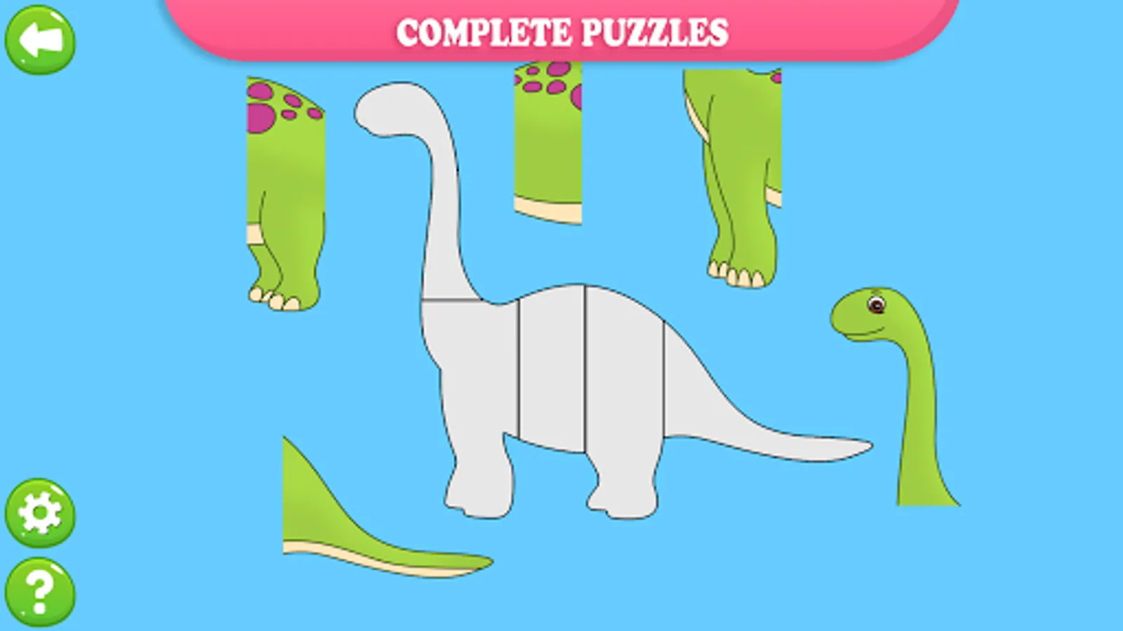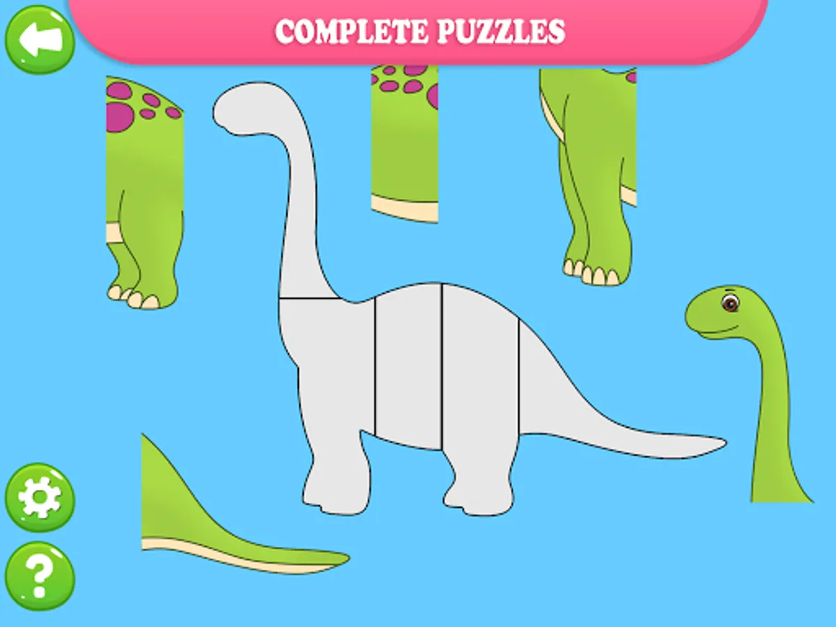 Puzzle – Match shapes and drag the pieces to the right place to make a whole dinosaur out of them.