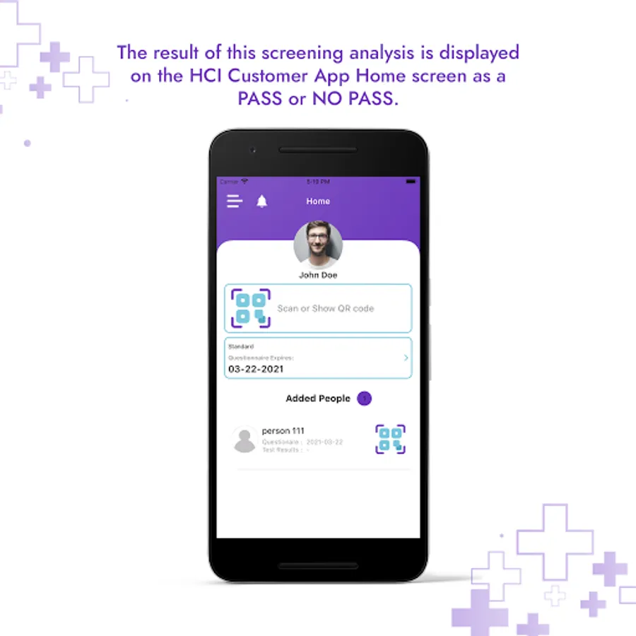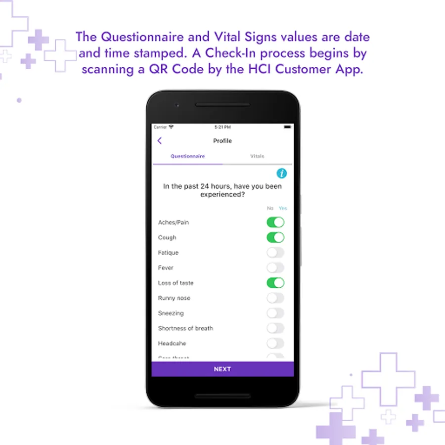 HCI (which stands for Health Check-In) Customer App is designed to help businesses to perform basic health screening of employees and customers (which we term as Users) entering their facilities. The HCI Customer App is designed to work in conjunction with the HCI Business App. Together, these apps serve as a Human Resource tool to provide a healthier environment among all people entering any facility that utilizes HCI. Through a series of monitored expiration of Questionnaire Answers and Vital Sign Inputs, Users of this App will be getting Notifications about their screening results