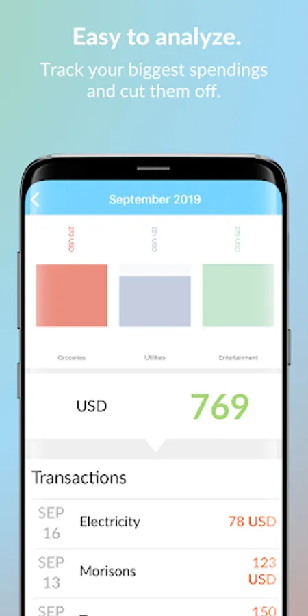 Budgetr tells you how much you left to spend this month. This way you can keep the expenses down and not overcome the budget, which will allow you to save money and buy the things that you want.
