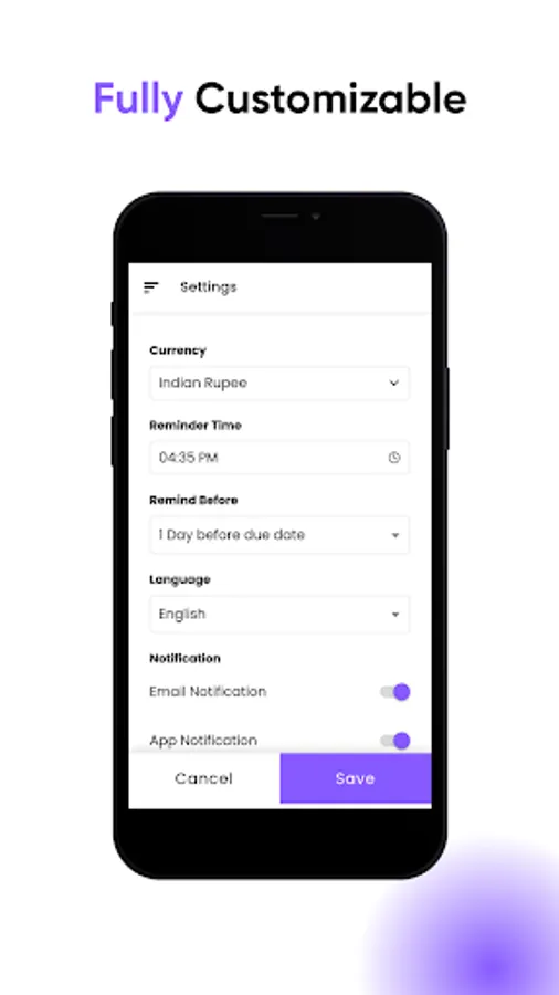 Want to change the default setting such as Currency, Reminder Time, etc.,? You can change the default setting at any time in the Settings menu.