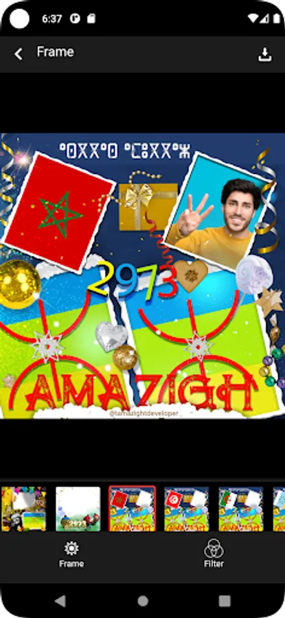 This Amazigh app includes very beautiful elements such as photo frames and a large number of Amazigh New Year greeting cards and wallpapers.