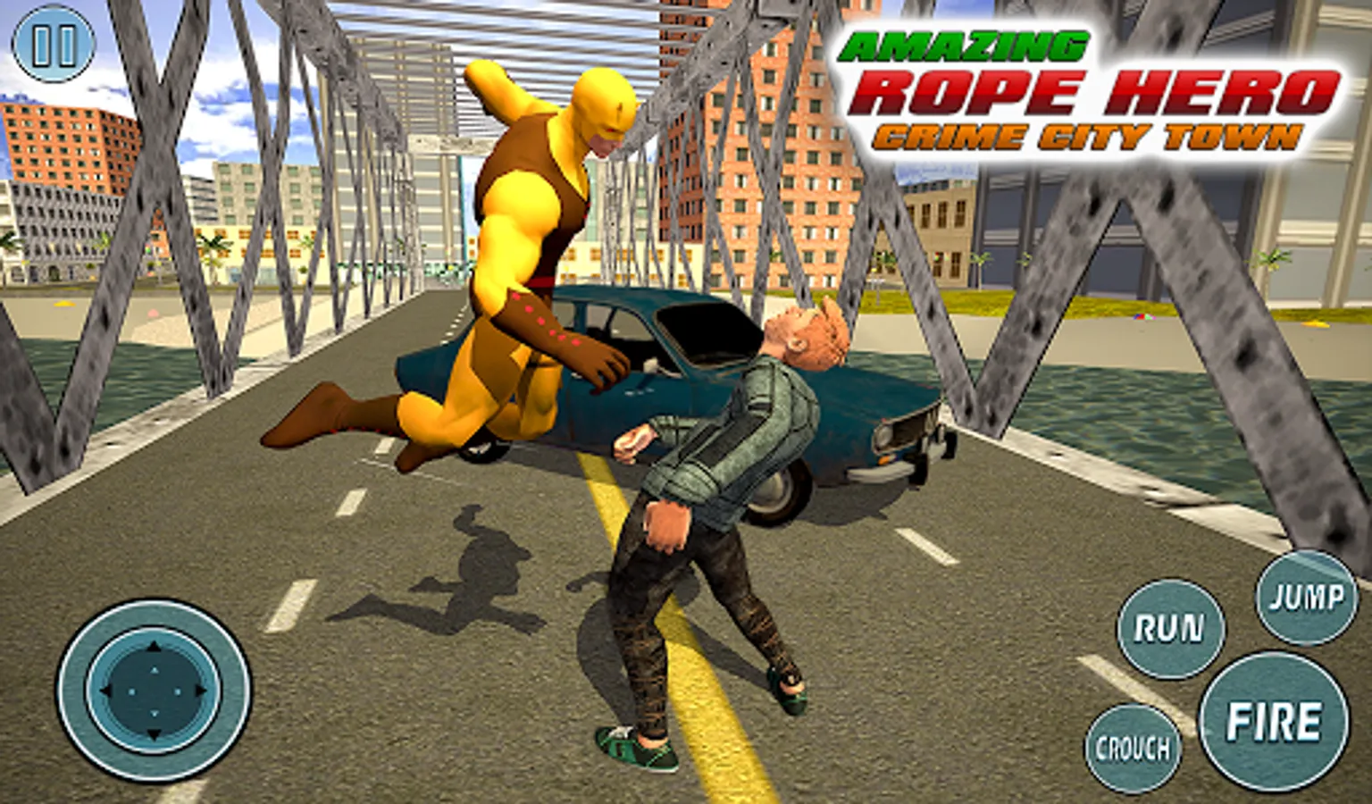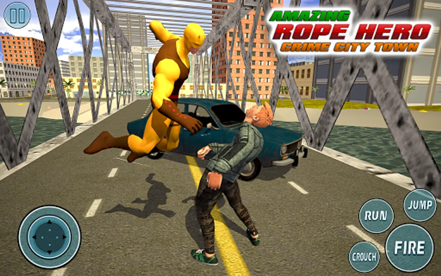 Entertaining adventure of rope hero in vice town. Dominate the city with devastating firepower to knock down enemies in few kicks. Kill your enemies with deadly explosive guns and super kick tricks. Rope crime hero is blend of free action game and deal with crime city real gangsters. Superman rope hero is future battle against grand city criminal. Swing in the city as amazing rope hero, run and climb on the walls of building, destroy the gangster and shoot with gun. Super rope hero action game is the grand war of rival gangs, crime city mafia and real police crime simulator. Quest line progress with enlarging money allowing you to unlock advanced deadly endless weapons.