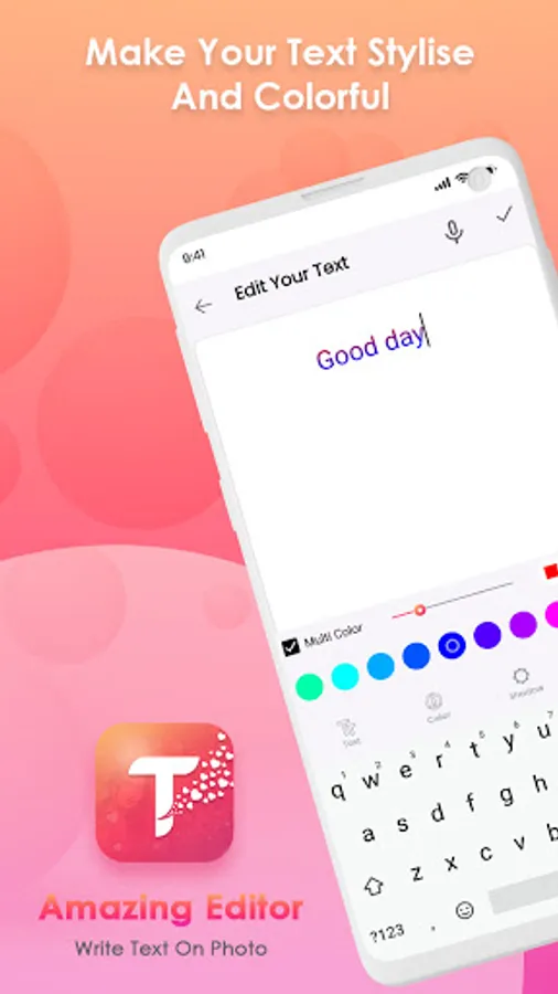 "Amazing Editor - Write Text on Photo" application lets you add cool background, quotes, texts, captions, and stickers to your photos. Using this app, you can express yourself by writing texts on your photos and share it with friends. Also, it has lots of attractive stickers, quotes and text customization facility to make your photos more impressive.