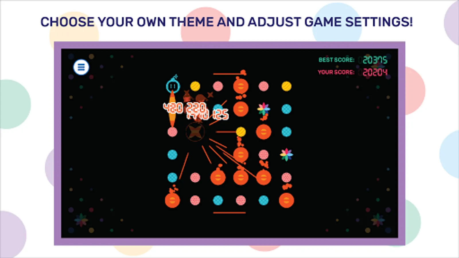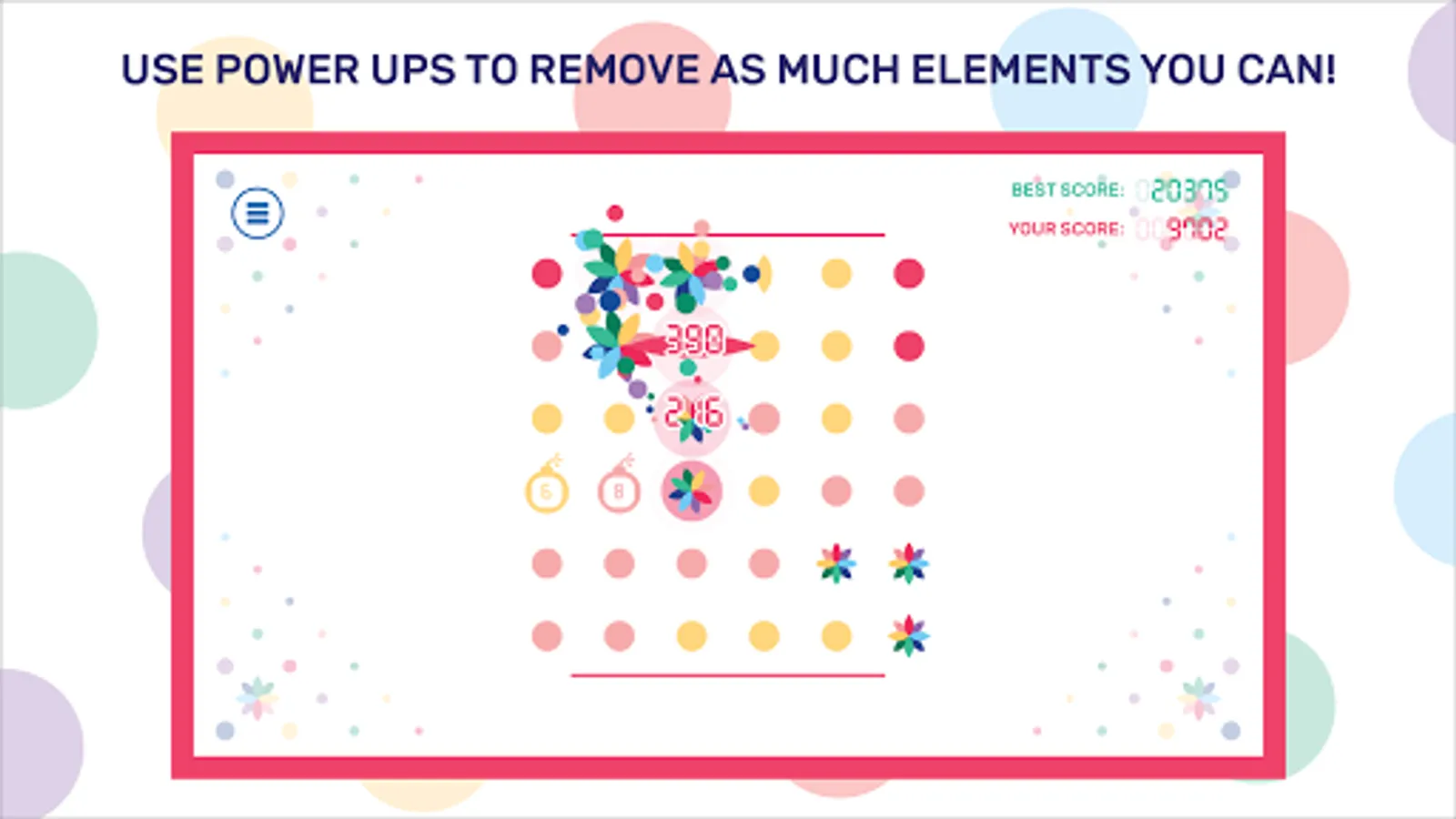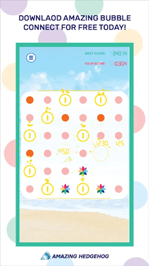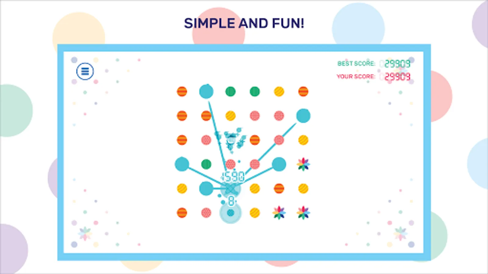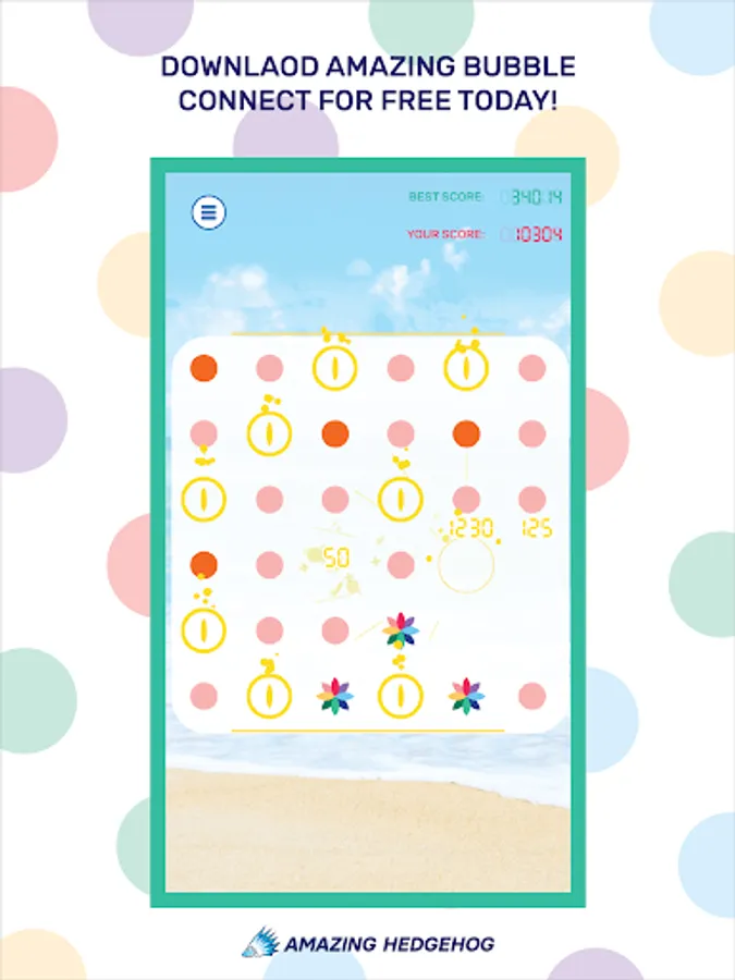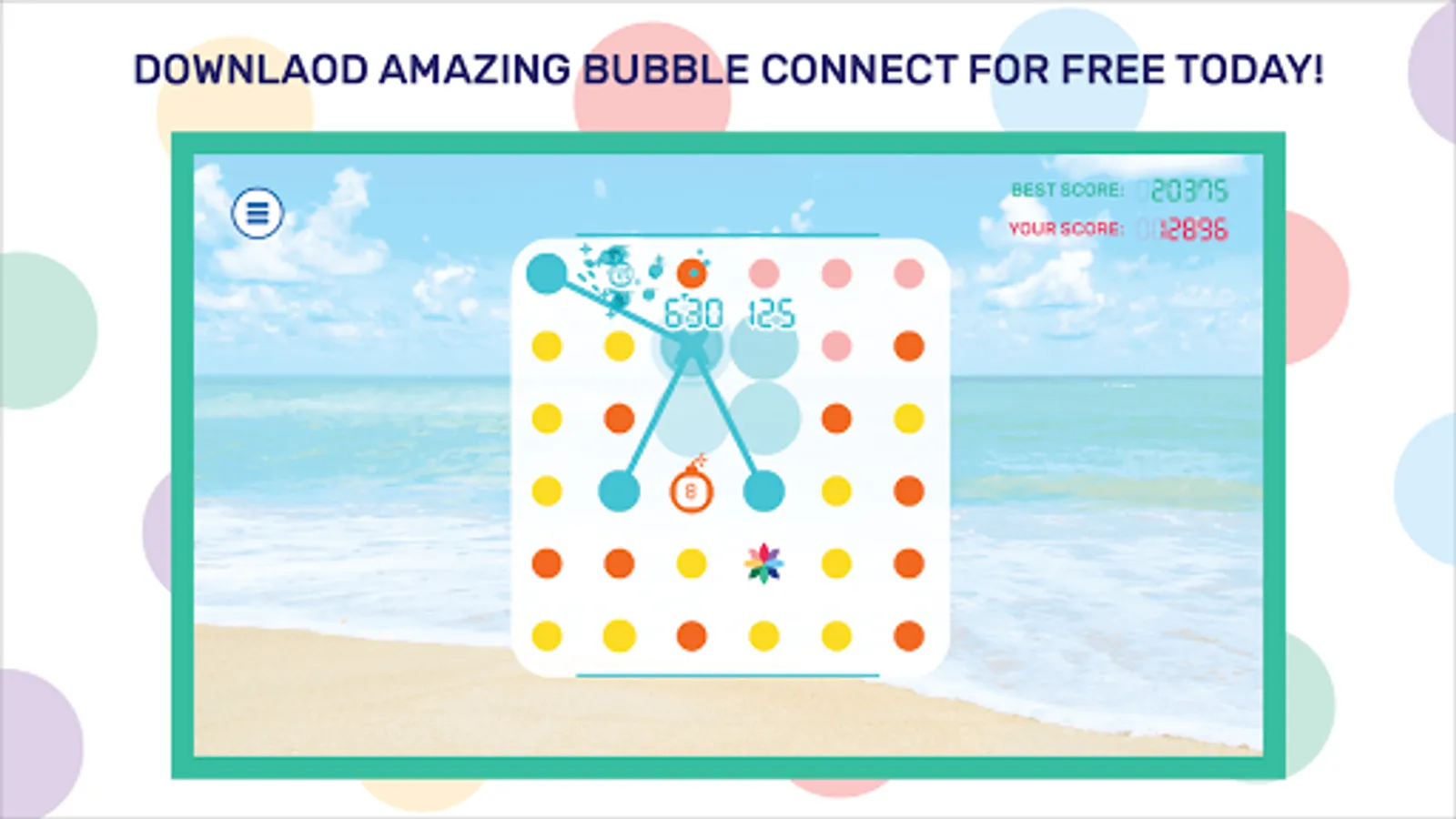 Connect same colored bublbles to get points. Connect four horizontally, vertically or in a shape of a squre to score even more.