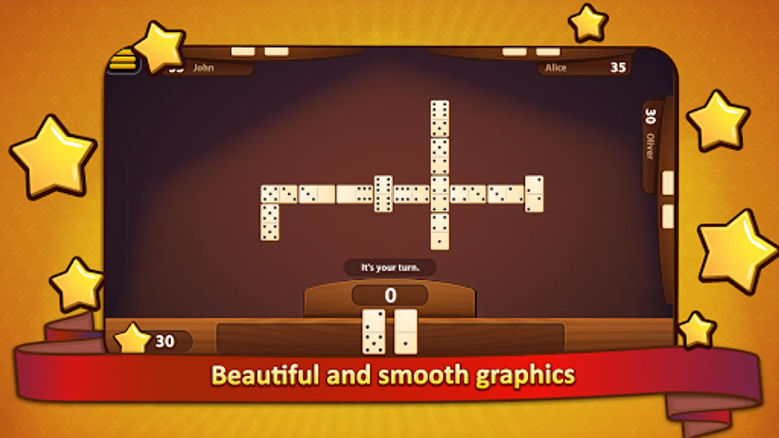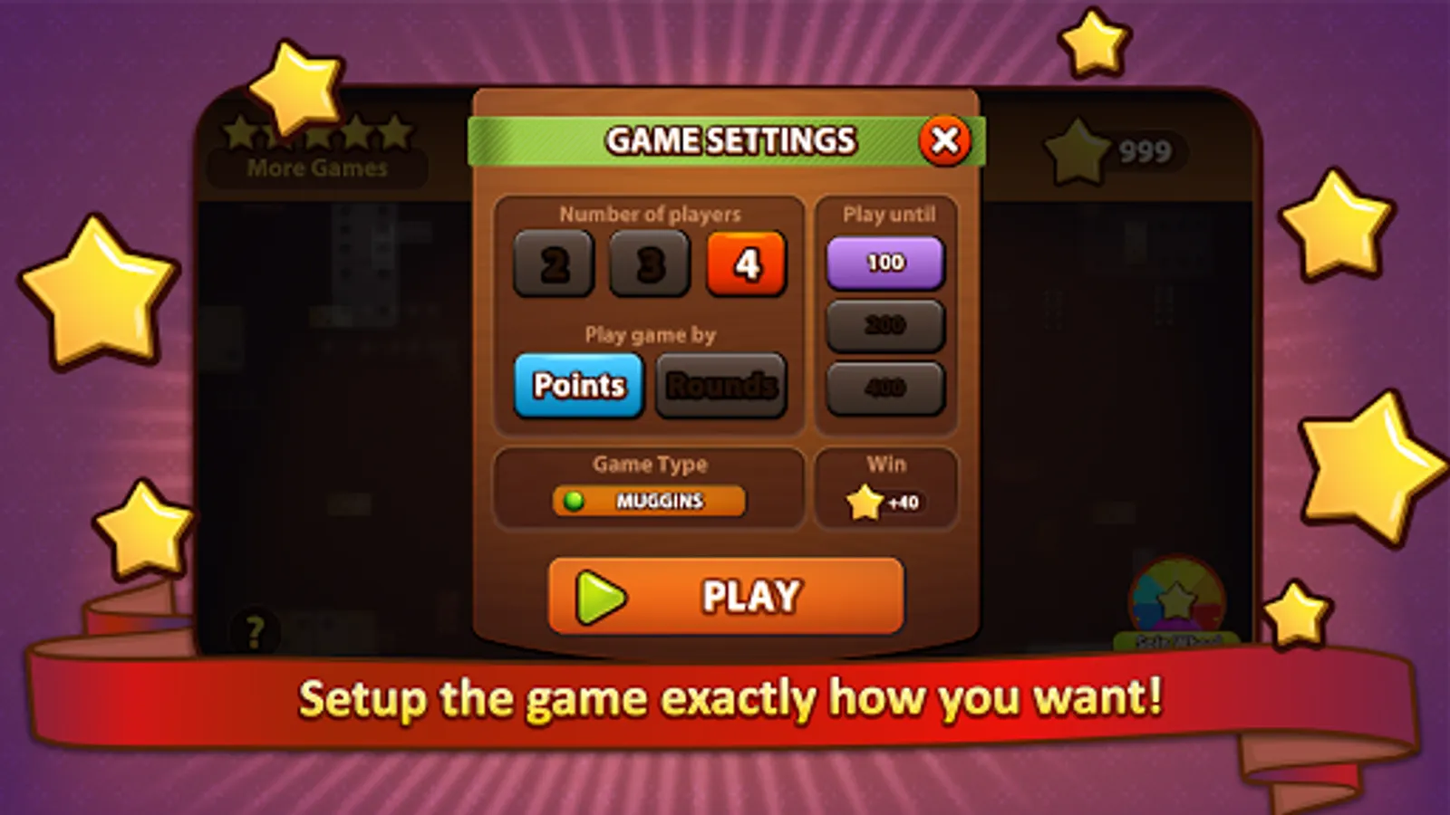 You can also play Muggins, All Fives, Draw or Classic Dominoes as this app supports all forms of dominoes games.