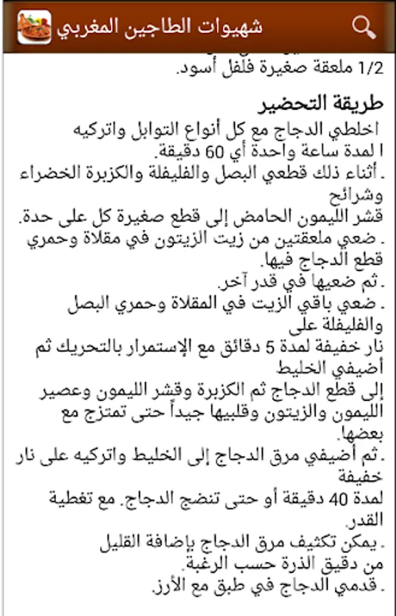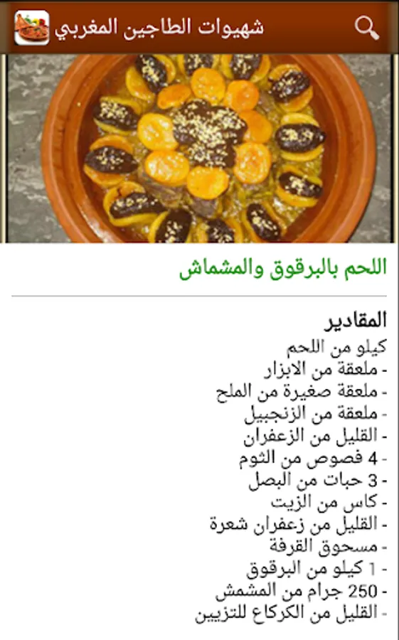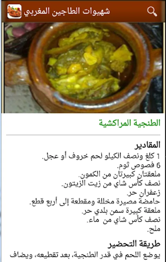 Application Shahyoat Moroccan tagine offers to Madam wide range of types of delicious Moroccan tagine: method of preparation and Ingredients: Facility pictures.
