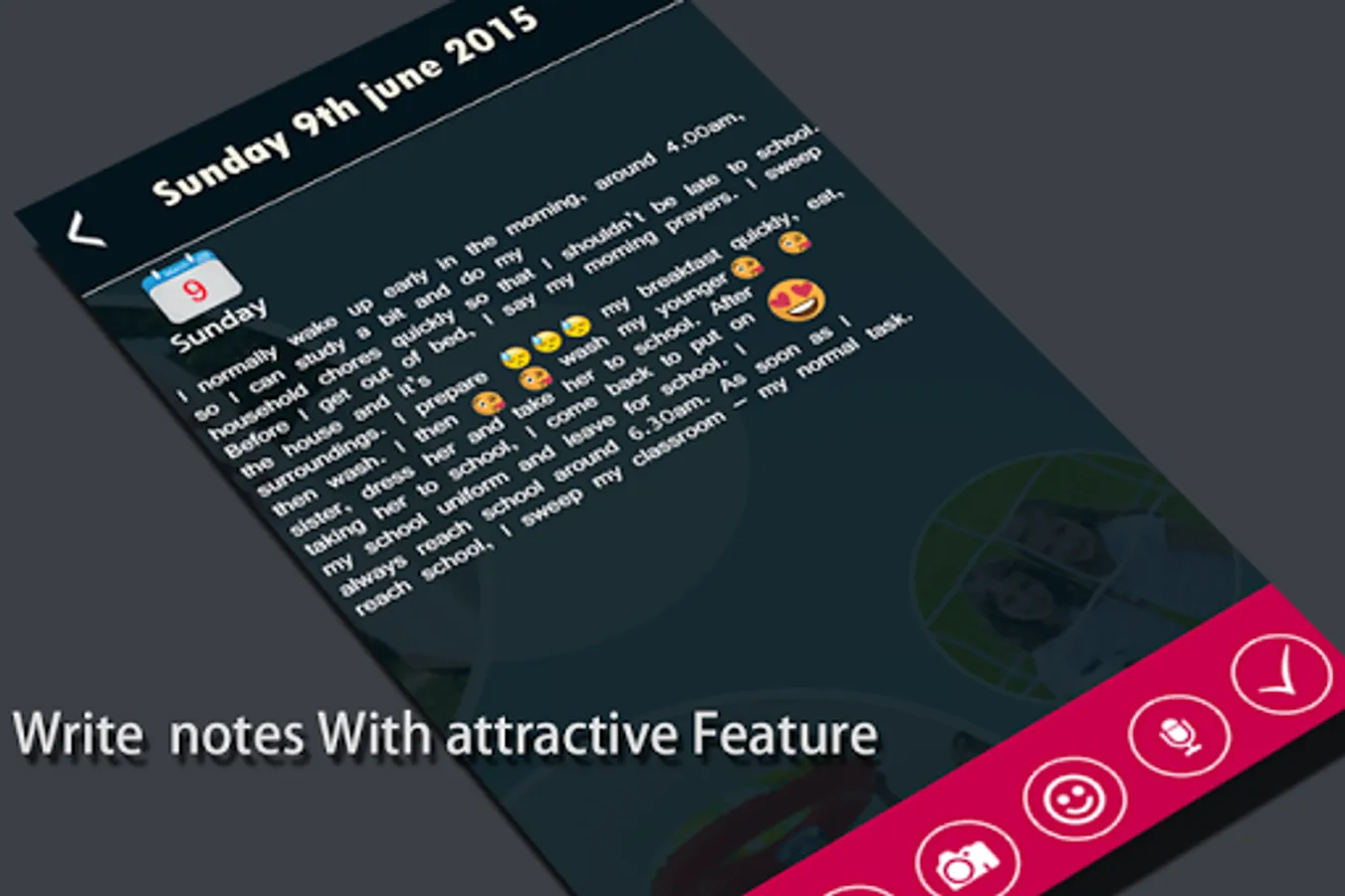 This is a multifunctional diary that keep your secrets within lock. Now forget that somebody other than you can read your secrets or daily dairy/Notes. This secret diary allow all android users to write your personal or daily experiences, thoughts, feelings, moments etc.