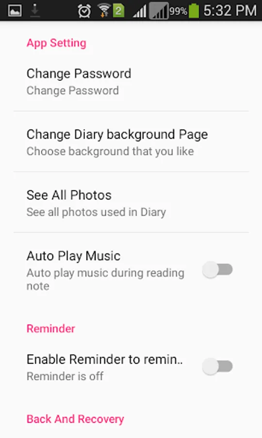 ★ Amazing security level that no one can reach access your diary without your permission.