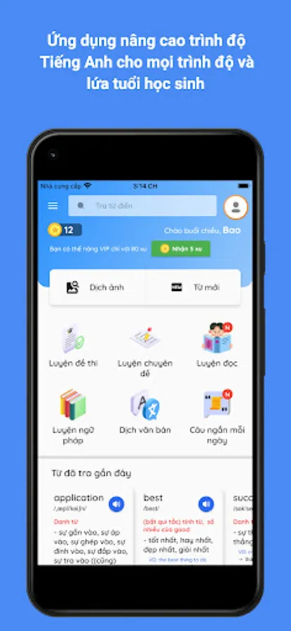 The application "Practice English for students" is one of the great products, created with the passion to improve the English language of the generation of Vietnamese students, for all students of all levels, all levels. Students of all ages should also install.