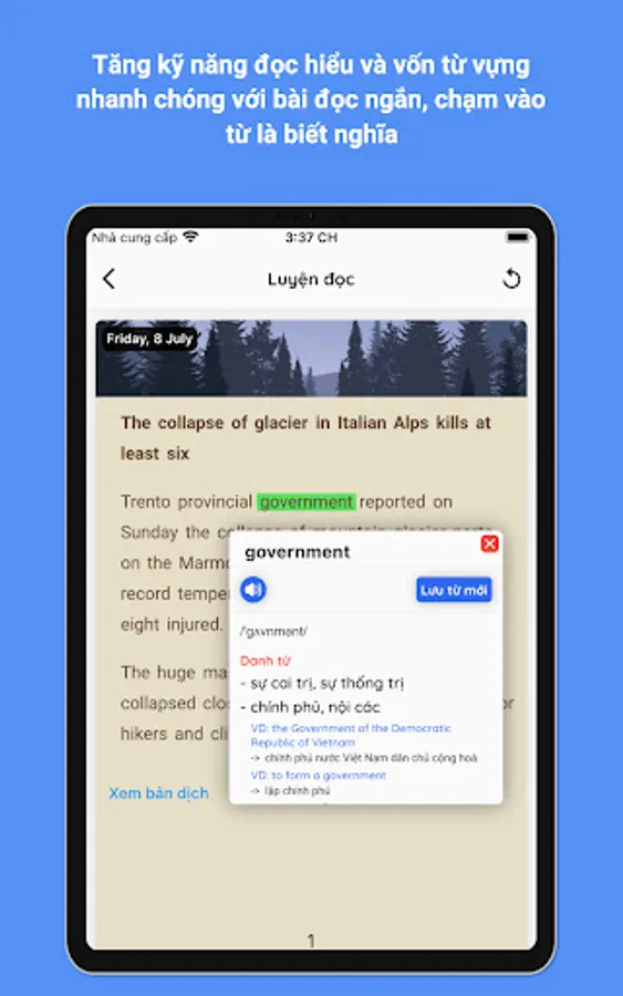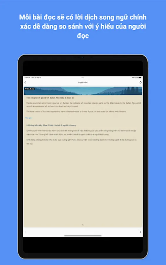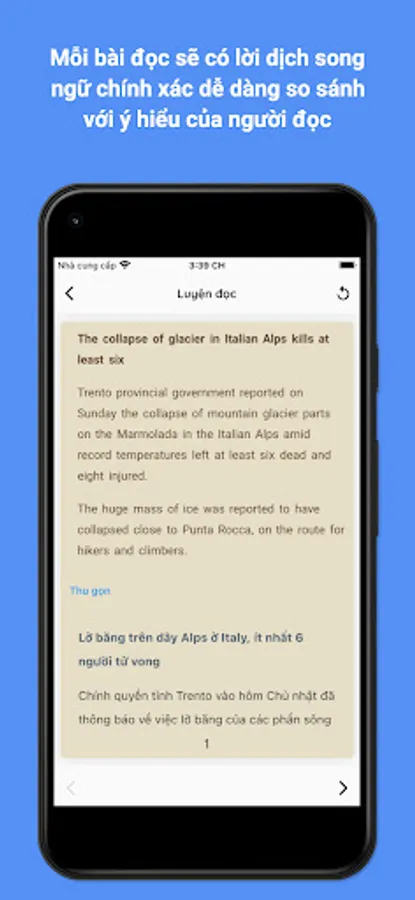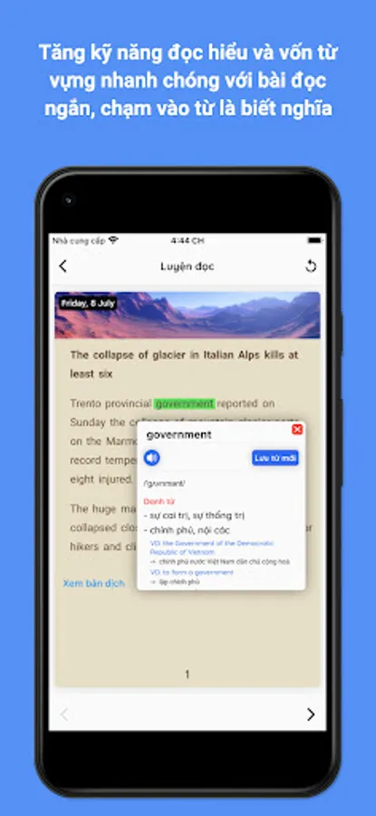2. Improve users' English reading comprehension every day with short readings, short sentences with translations