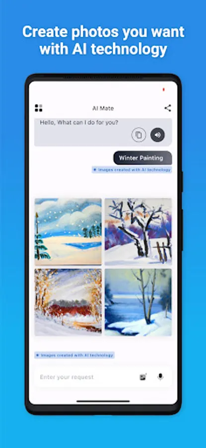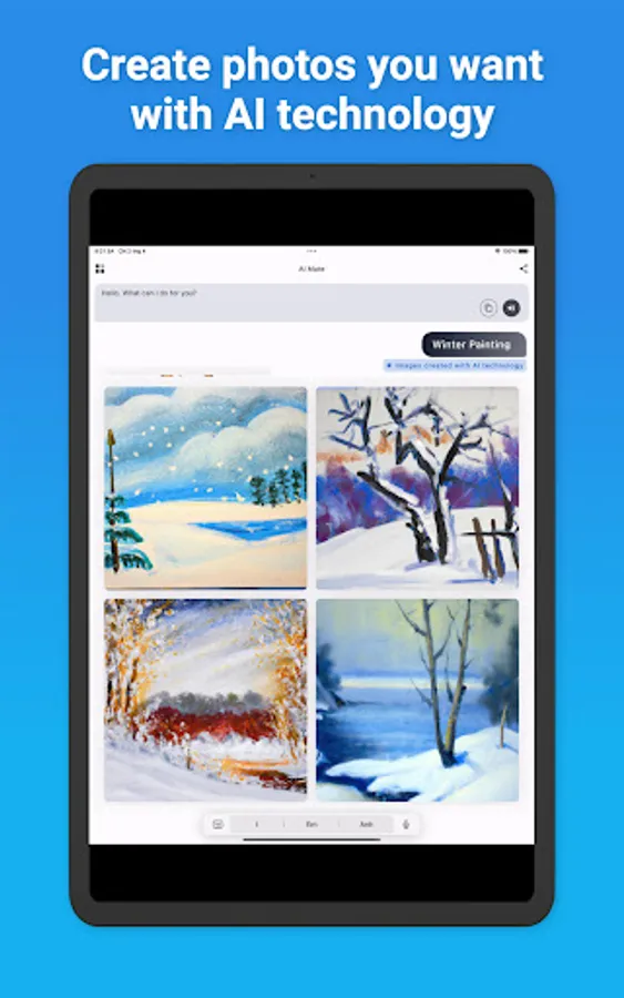 * Microphone & Photo Gallery – help to save photos after generating, voice to text, text to voice
