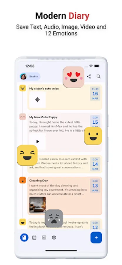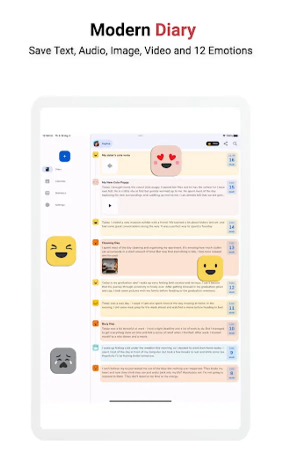 This Modern Diary is the leading Diary With Lock App, provides a private and safe space to document your life journey and help you reflect on your feelings and goals, journaling for your thoughts, keep a daily diary of your health,...