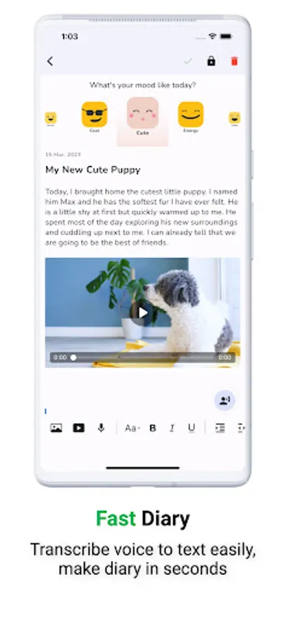 With many outstanding features such as easily creating a diary in seconds with many interesting mood icons.