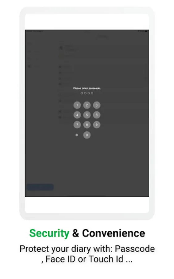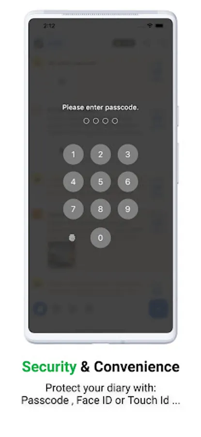 5. Secure your diary with lock, password: Passcode, FaceId or Fingerprint