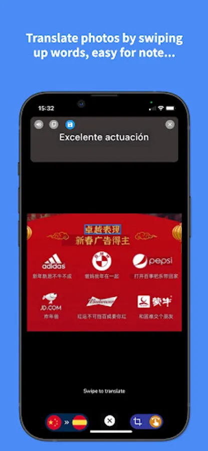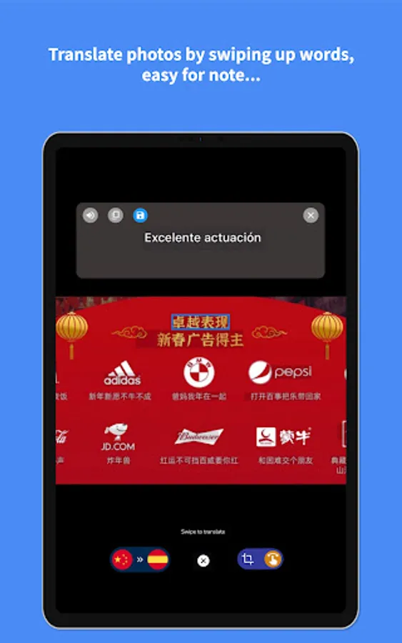 Many choices for photo translating like : croping area, swiping on words to know the meaning.