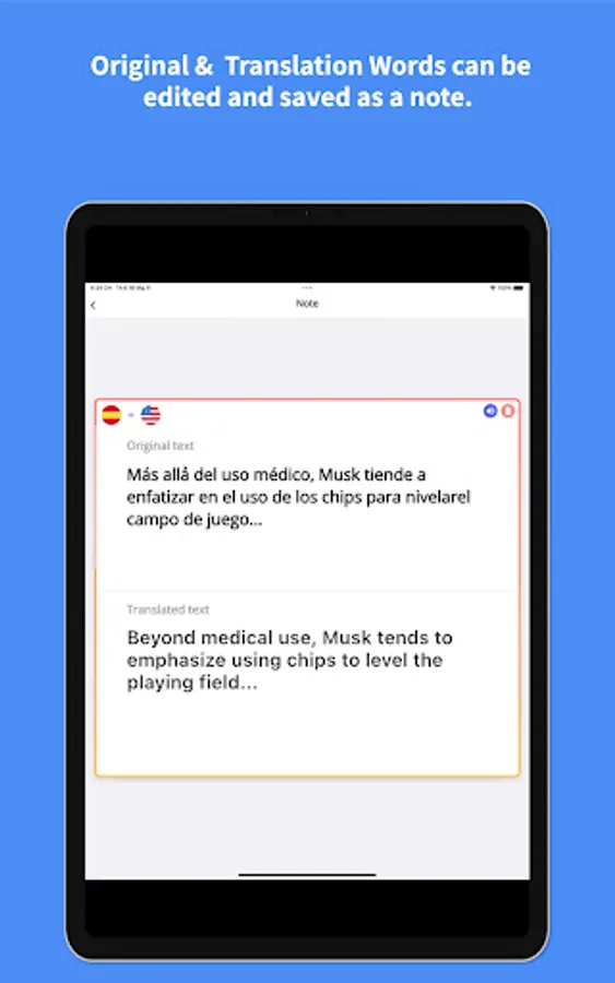 After camera, photo translating, you can save, edit the original & translated text for reviewing, noting or learning.