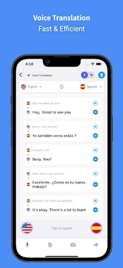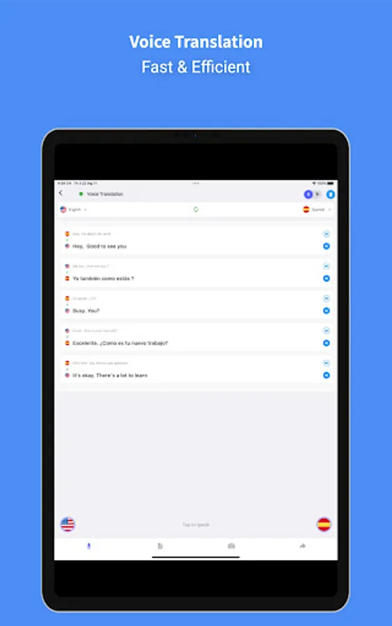 Real-time Speech translator to both text and audio, tap-to-play again.