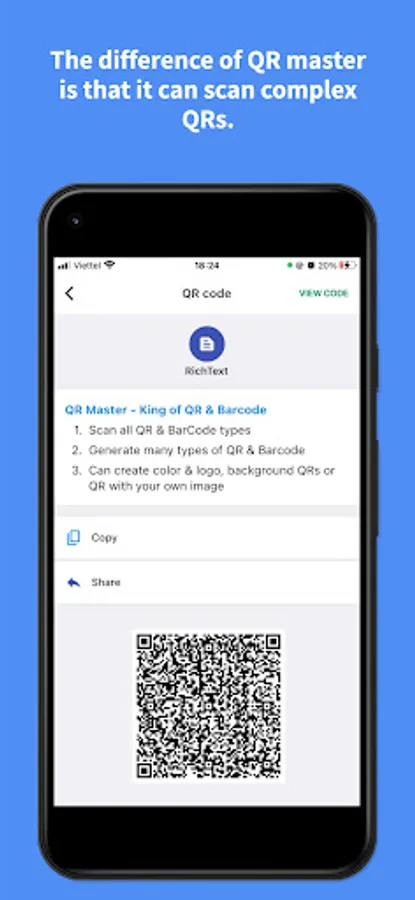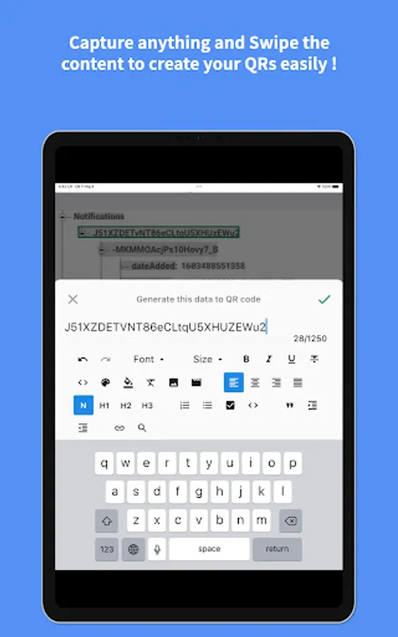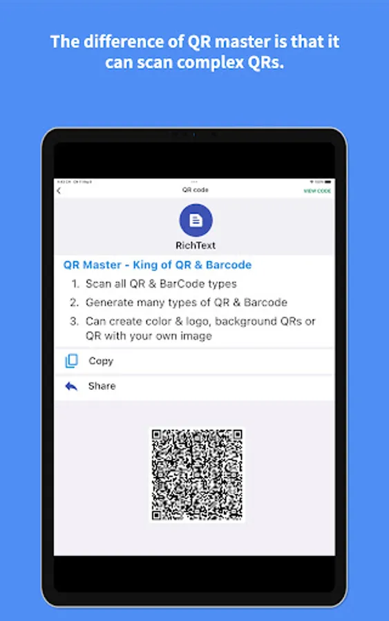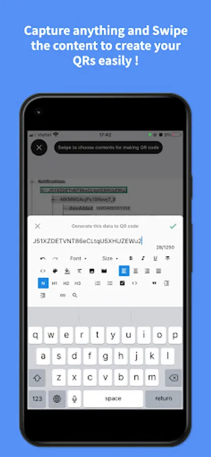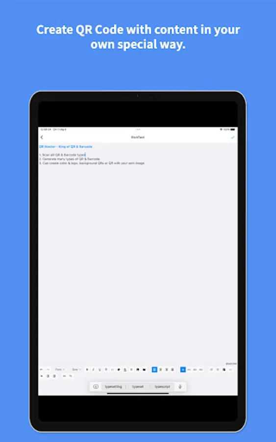 1. Scan and Generate complex QRs : Rich Text with font, colors, styles