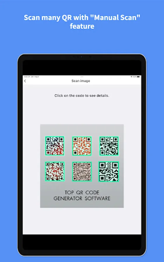 7. Scan many QR code or Barcode, UPC one time with "Manual Scan" feature for Pro Version